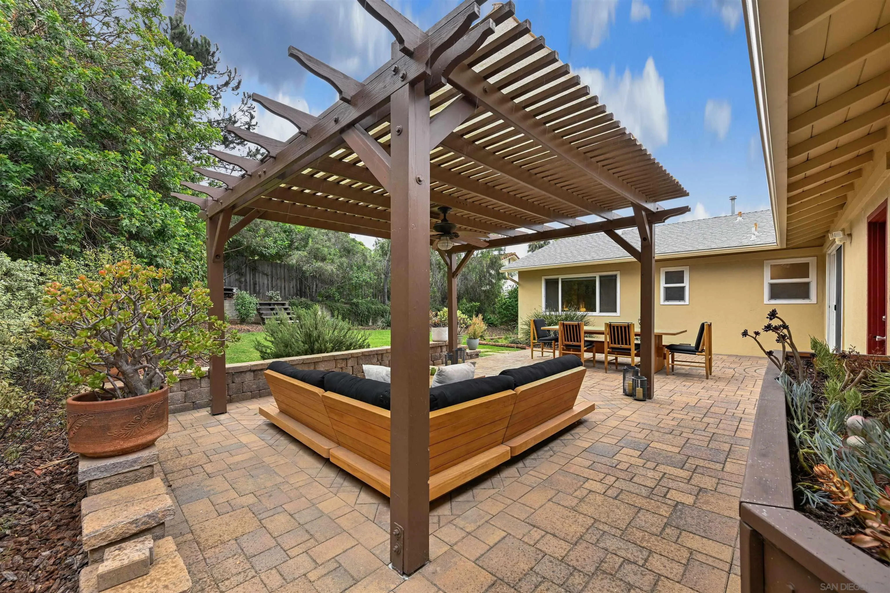 Welcome to this beautifully upgraded single-level home nestled in the highly sought-after Del Cerro neighborhood. Thoughtfully renovated and truly turnkey, this residence offers a seamless blend of comfort, style, and functionality. Step inside to find an inviting open layout with rich hardwood flooring, a modernized kitchen featuring quality finishes, and tastefully updated bathrooms. Central heating and air conditioning provide year-round comfort, while the attached two-car garage adds everyday convenience. The expansive backyard is a standout feature—private, spacious, and designed for both entertaining and relaxation. Whether hosting gatherings under the pergola, enjoying outdoor dining, or creating your own garden retreat, this outdoor space offers endless possibilities. Ideally located just moments from local favorites like Windmill Farms, neighborhood dining, and everyday essentials, with quick access to major freeways for an easy commute. Outdoor enthusiasts will appreciate the proximity to Mission Trails Regional Park, offering miles of hiking and biking trails, while nearby parks and top-rated schools within the Patrick Henry cluster add to the home’s appeal. A rare opportunity to own a move-in ready home in one of San Diego’s most established and convenient communities.