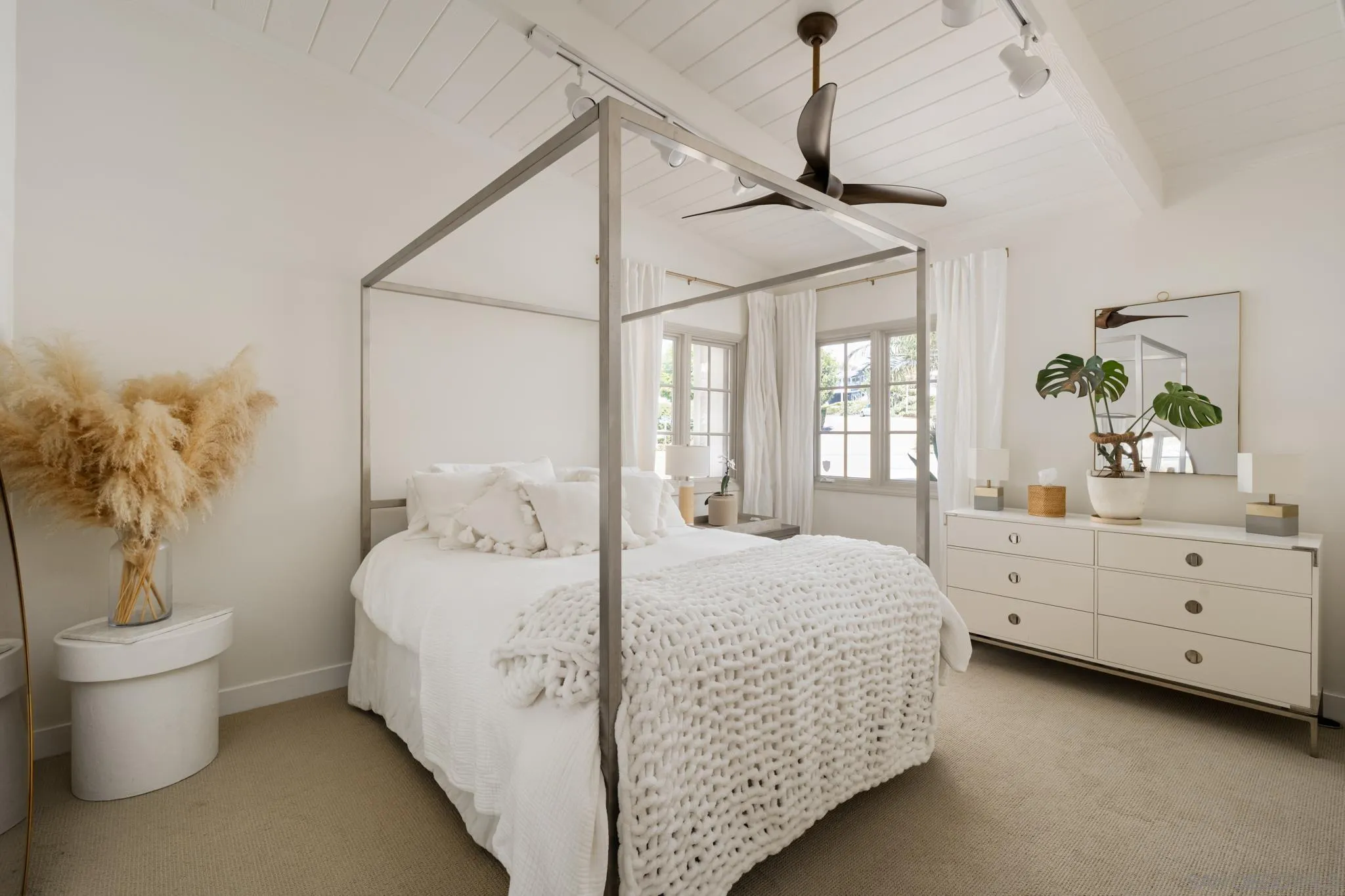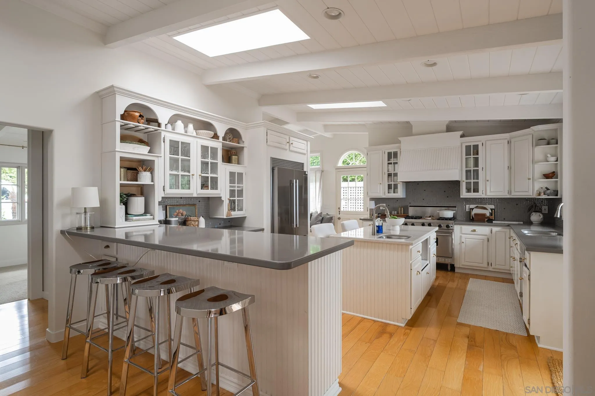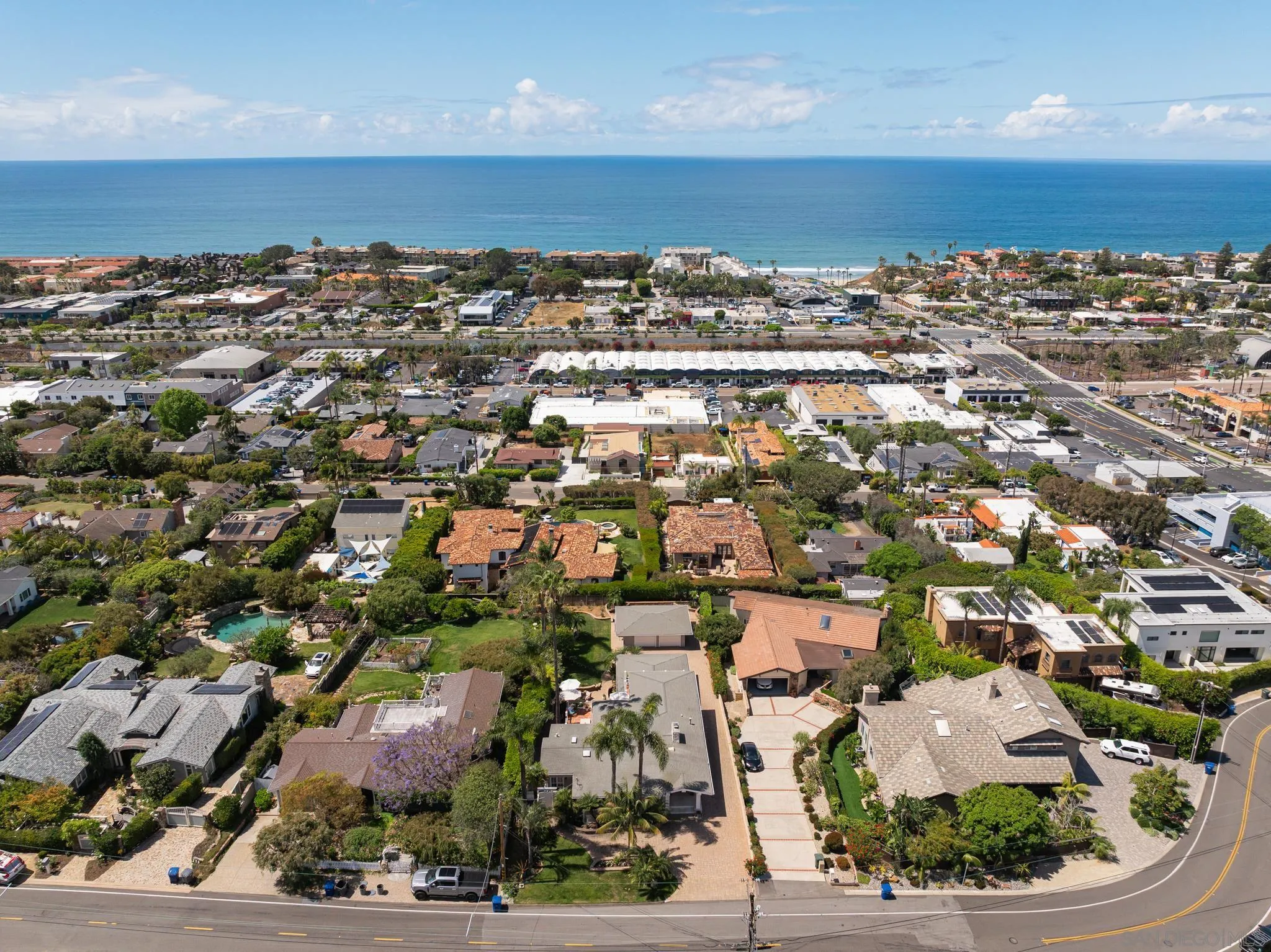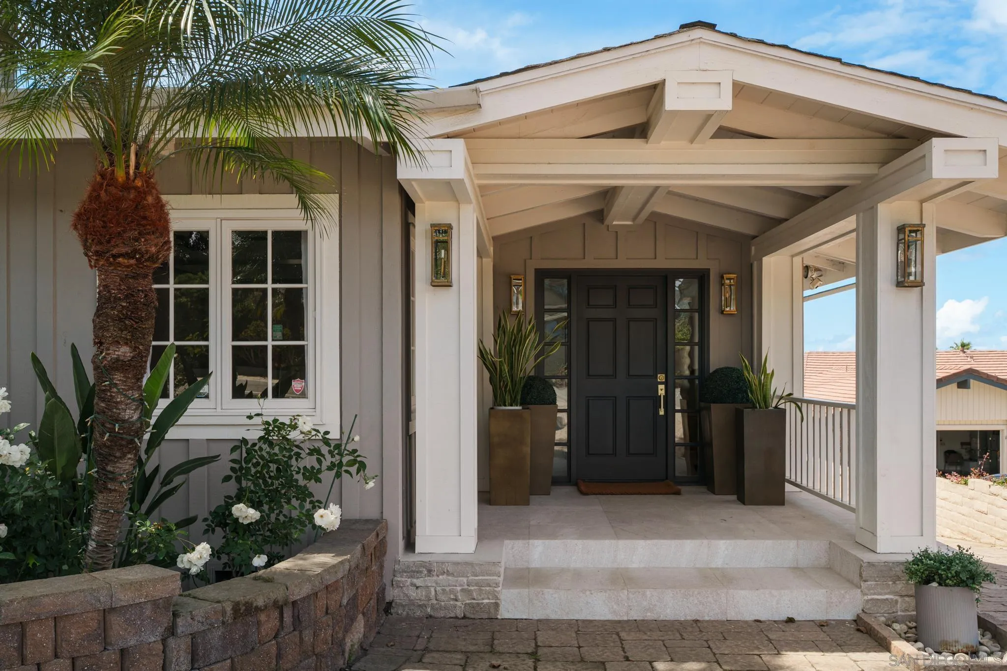 Set on an expansive, lushly landscaped .32 acre lot, on one of the most sought-after streets in North County, this timeless Cape Cod–inspired residence offers a rare combination of privacy, charm, and sweeping, protected ocean views from nearly every room. Perfectly positioned to capture the natural beauty of the coastline, the home is filled with soft coastal light and designed for effortless indoor-outdoor living. A welcoming entry opens to the main living level, where oversized windows, French and sliding doors, frame endless ocean vistas. The thoughtfully designed gourmet kitchen blends classic style with functionality, featuring stone countertops, custom cabinetry, top of the line appliances, bar seating, and an inviting breakfast nook. The kitchen flows seamlessly into the dining, family and living rooms, all of which open to generous wraparound ocean view decks—creating an ideal setting for entertaining, sunset dining, or quiet mornings overlooking the Pacific. The flexible floor plan offers a bedroom and dedicated office on the entry level, perfect for guests or working from home, while the lower level hosts three spacious bedrooms. The primary suite is a true retreat, offering serene ocean views from both the bedroom and the spa-inspired bath, complete with a soaking tub positioned to take in the horizon—an everyday luxury that feels like a private getaway. Additional highlights include a two-car attached garage plus a rare two-car detached garage, offering exceptional flexibility for future use. See supplement...
