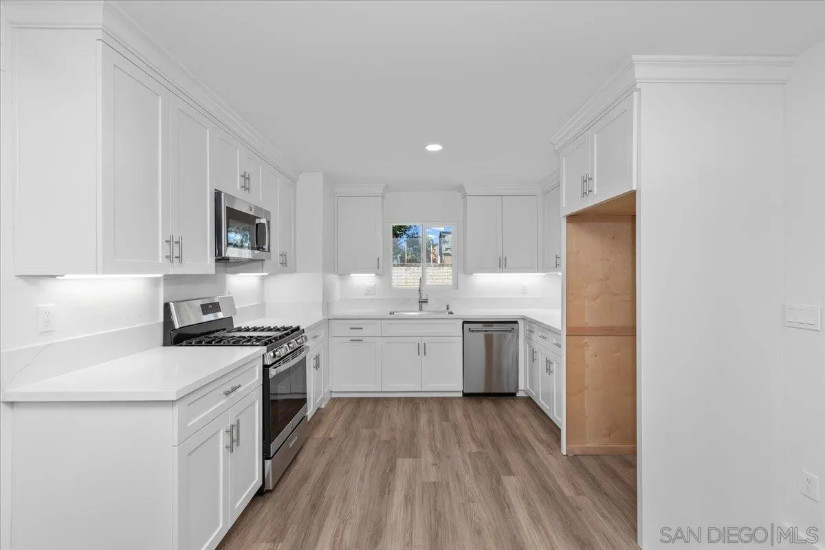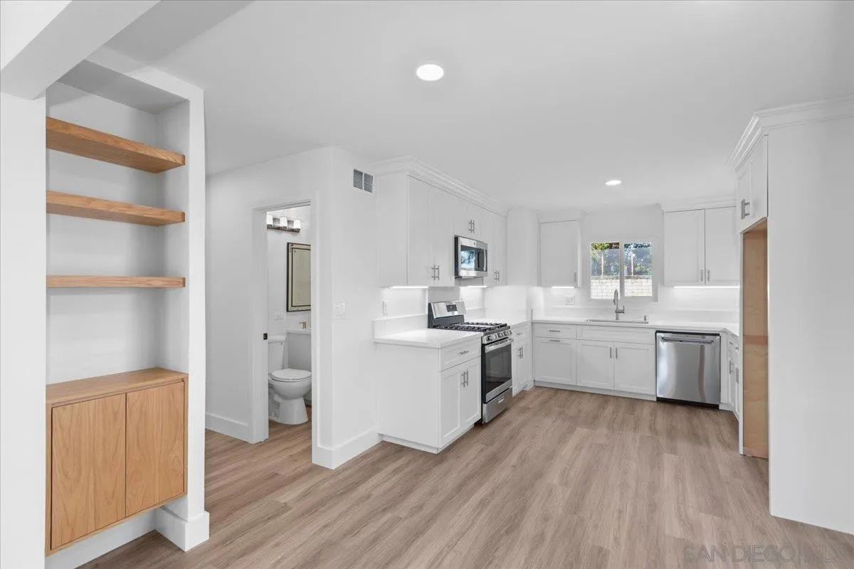 Remodeled top to bottom! Kitchen updated with new appliances, new sink and faucet, and new cabinets. Bathrooms completely remodeled. New dual pane windows. ALL of the following are brand new; roof, patio cover, furnace, water heater, garage door, front door, flooring, baseboards, light fixtures, mirrored wardrobes, etc.... Loads of space in the backyard too! This property is a must see!