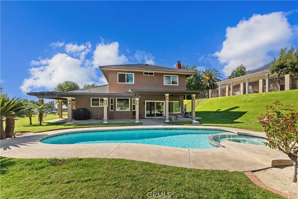 High up on the hill, over 2000 feet above sea level, sits this gorgeous property meticulously maintained over the years. 2387 Sq/Ft of living space on a 19,000 Sq/Ft lot surrounded by breathtaking views of the San Gabriel mountains.The home's inviting foyer greets you with custom double glass front entry doors, setting the tone for the expansive formal living room and dining room, where windows and French doors flood the space with natural light. The gourmet kitchen is a chef's dream, boasting stainless steel appliances, dual ovens, cook top, granite counters,under cabinet lighting, lazy Susan's, soft close drawers & even a pocket door.. Whether you're preparing a quick meal or hosting a lavish dinner party, this space will inspire culinary creativity. There is a first-floor bedroom offers convenience and flexibility, perfect for guests or as a private home office. The downstairs guest bath is elegantly appointed with dark emperor marble shower. Finishing off the downstairs is a family room with fireplace, upgraded mantel, surround sound speakers & breakfast nook area. Upstairs you will find 3 bedrooms and 2 baths.The primary suite is a true retreat, featuring custom ceiling acent lighting and its own private deck with breathtaking sunset viewsideal for enjoying your morning coffee or unwinding with a sunset glass of wine. The primary bathroom is a spa-like sanctuary, complete with an oversized granite shower, large vanity area and his n hers closets.. The rear yard is an entertainers dream with plenty of room & a sparking pool to host large gatherings. There is also a full