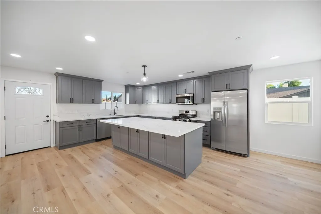 Welcome to 831 N Sunflower Avenue, a rare opportunity featuring two beautifully finished homes on one lot. The main home and three-car garage were newly constructed from the ground up, offering 4 spacious bedrooms and 2 stylish bathrooms. The open-concept layout highlights a large kitchen island, walk-in pantry, and custom cabinetry topped with quartz countertops. Included are a refrigerator, microwave, stove, and dishwasher. Both bathrooms feature tiled walk-in showers, and the hallway laundry room adds convenience. This home also includes solar panels for energy efficiency and long-term savings. The second home (ADU) has been completely reconstructed and remodeled, featuring 3 large bedrooms and 2 modern bathrooms, each with walk-in tiled showers. The kitchen is equipped with quartz countertops, new cabinetry, refrigerator, stove, microwave, and dishwasher. Laundry hookups are located in the kitchen closet. Both homes include new plumbing, tankless water heaters, and central air and heat for year-round comfort. Each unit has separate gas, and electric meters, ensuring full independence and flexibility for multi-family living or rental income. The property also offers a long concrete driveway, new white vinyl fencing separating both units for privacy, and fresh landscaping with new lawn and sprinklers for a clean, modern curb appeal. This is a turnkey two-on-a-lot opportunity ideal for multi-generational living or investment, located in a desirable Covina neighborhood near schools, shopping, and major freeways.
