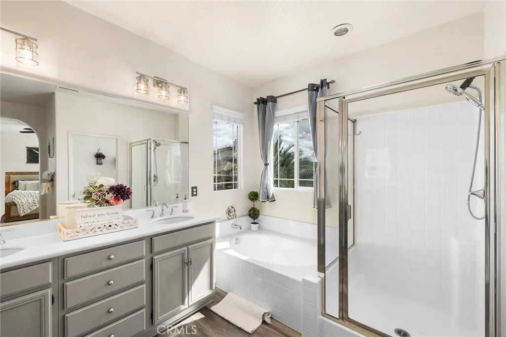 Beautiful 2,840 Sq. Ft., 5 Bedroom 3 FULL Bath Home Located in The Hidden Gem of the Valley McSweeny Farms. This Stunning CORNER LOT Home is MOVE-IN READY w/Bedroom & FULL Bathroom Downstairs, 3 CAR TANDEM Garage and OPEN FLOOR PLAN. The Many Upgrades Include, Luxury Plank Vinyl Flooring, GRANITE Counters, Samsung Digital SMART Range w/Alexa & Smartphone Controls, Honeywell SMART THERMOSTAT, Newer Microwave, Newer Tankless Water Heater, MYQ SMART Garage Door Opener, Newer Garage Door Springs, Rain Gutters & Alumawood Patio Cover. The First Floor of This Beautifully Crafted OPEN LAYOUT Includes Large Family Room Off Gourmet Kitchen w/Granite Counters & Tons of Cabinets, Direct Garage Access w/Private Laundry & Linen Storage Area, Formal Living/Dining Room, Bed/Full Bath & Large Under Stair Storage Closet. Upstairs Includes Large Primary Suite, Large En-suite Primary Bathroom w/Vanity, Large Soaking Tub, Walk-In Shower & Oversized Walk-In Closet w/Double Sided Mirrored Door. 3 Large Bedrooms, Full Bathroom w/Shower & Tub. The Beautiful Neutral Luxury Vinyl Plank Flooring Flows Throughout the Home and Complements the Custom Paint and TONS OF NATURAL LIGHT And Makes This Home Truly Stunning! The Low Maintenance Private Backyard Includes Alumawood Patio Cover, Concrete & Turf, Planter Area, Gated Side Yard & Block & Wood Fencing. Combine ALL THIS with The INCREDIBLE AMENITIES of the McSweeny Farms Community and You Will See Why Its The Hidden Gem of the Valley. McSweeny Farms is Located ONE MILE from Diamond Valley Lake, Minutes from Temecula Valley Wineries & Foothills for Hik