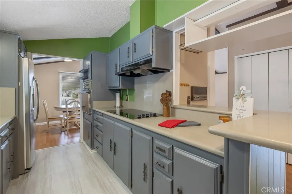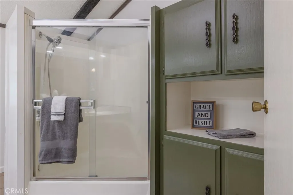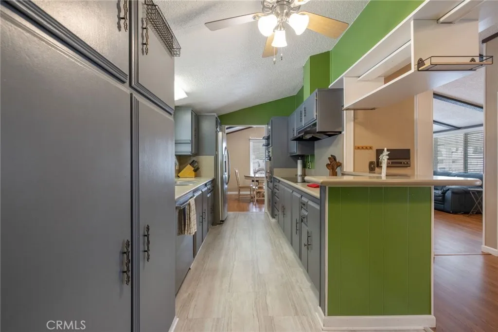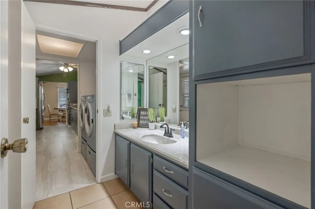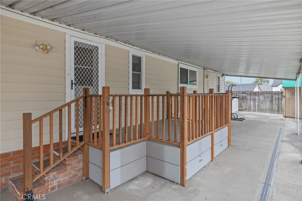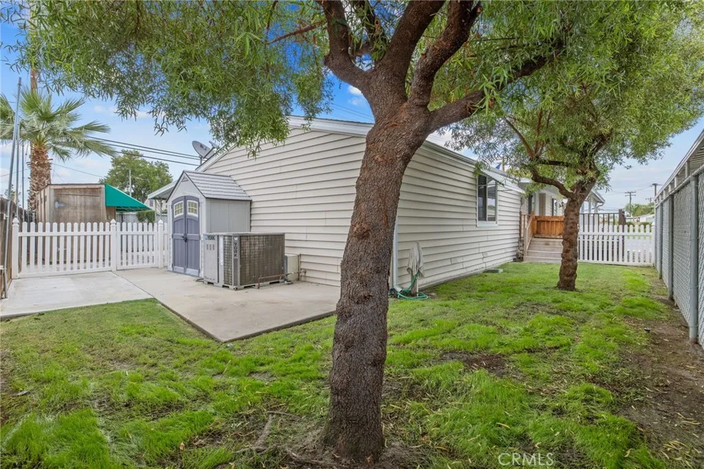 This beautifully remodeled 2-bedroom, 2-bath double-wide manufactured home offers 1,440 sq ft of spacious living. Over the past seven years, it has been thoughtfully updated with dual-pane windows and blinds that invite natural light, a newer comp roof, updated electrical, and a newer water heater. Inside, you'll find plush carpet in the bedrooms and stylish laminate flooring throughout the main living areas. The layout includes a full living room, a cozy family room, and a formal dining room featuring a built-in china cabinet. The kitchen has been modernized with ample cabinetry and newer appliances, all seven years old or less, including an electric cooktop, dishwasher, refrigerator, microwave, washer, and dryer. The master suite is generously sized and includes a spacious bathroom with dual vanities, a large shower, and plenty of storage. Additional storage is found throughout the home, making organization effortless. Outside, enjoy a large, covered patio deck with an ADA ramp, a charming yard, and two storage sheds with one fully equipped with shelves, lighting, and electricity. The covered carport accommodates two vehicles, with extra space available for RV or trailer parking (subject to park approval). The exterior features durable vinyl siding, a beautiful brick perimeter, and privacy fencing, all softly illuminated by country-style lights that create a warm evening ambiance. Located in a welcoming 55+ mobile home community, residents enjoy access to a variety of amenities including a community clubhouse, a sparkling pool and relaxing spa, and a scenic BBQ area with