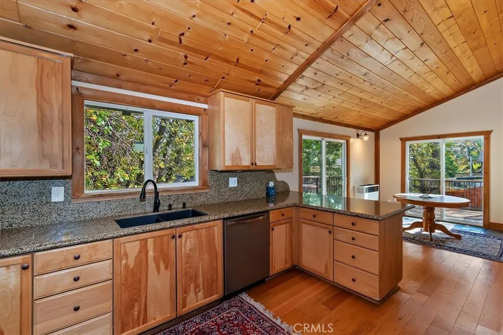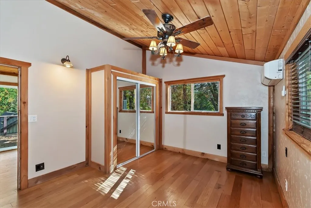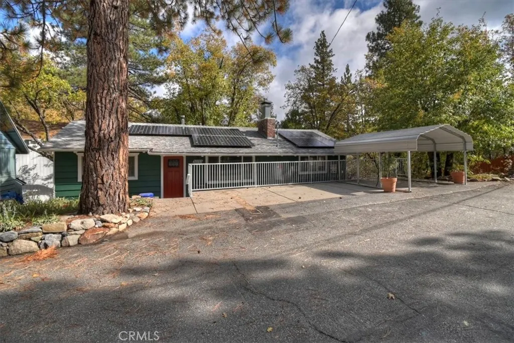 Charming Single-Level Mountain Home in Arrowbear Cul-de-Sac Street with Trail Access! Centrally located Arrowbear, short distance to Snow Valley or hour to Big Bear or down the hill to Highland / Redlands. This well-loved 3-bedroom, 1-bathroom home offers the perfect blend of comfort and convenience, with true single-level living with just three easy steps to the front door, level off-street parking (room for 3+ vehicles), one under carport. Inside, you'll find a warm, inviting interior featuring wood ceilings, a cozy wood-burning stove, newer vinyl windows, and mini-split systems in every room for efficient heating and cooling. The updated kitchen boasts stainless steel appliances (dishwasher brand new) and induction range is brand new (faster and safer than gas), newer cabinetry, and granite countertopsideal for home cooks and entertainers alike. Fresh paint throughout gives this home a crisp, move-in ready feel. Sustainable living comes easy with solar panels (owned), a Tesla charger, a 200 AMP electrical panel and fully insulated (unlike many other mountain homes). Step outside to enjoy low-maintenance Trex decking, beautiful spring blooms and fruit trees across three included lots, and direct access to nearby trailsperfect for hike, bike or nature walks right from your home. Bonus features include a spacious unfinished basement with windows, offering great potential for a workshop, or extra storage. Whether you're looking for a full-time residence, a vacation getaway, or a rental opportunity, this home has everything you need in a peaceful, nature-filled setting. Com