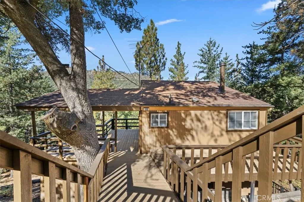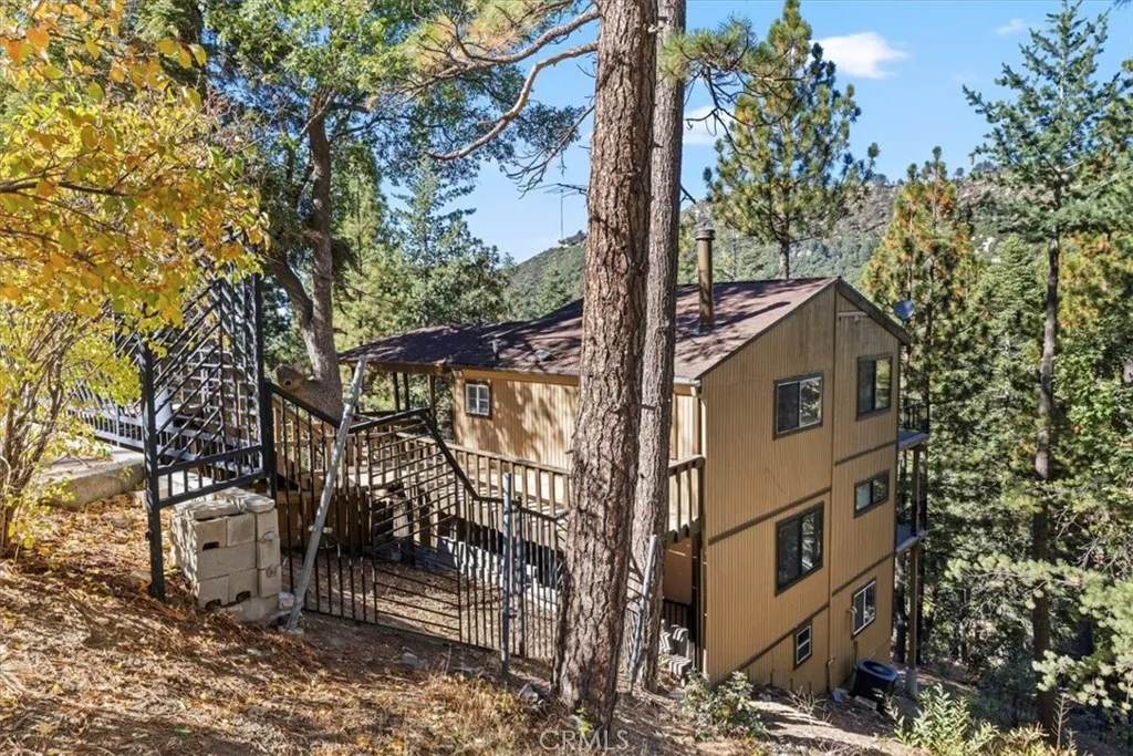 Nestled amongst the Pines you will find this Beautiful Remodeled and Updated Home. Enter on the main Living level to find Breathtaking Mountain Views and an Open Family Room with Gourmet Kitchen. New Stainless Appliances. The Oven is Convection, Wifi, Smart and Self Cleaning, Just in Time for the Holidays! New Wood-Like Flooring. Fleshly Painted Inside & Out, Both Bathrooms have been Remodeled! This home has Central A/C too! The Open Family Room has a cozy Wood Burning Fireplace. Rich Wood T & G Ceilings . In the Attached Formal Living Room, you will find a Slider that opens onto a Deck with Striking Views of the Forest and Mountains. Downstairs you will Find Two Master Suites. They are Separate and on opposite sides of the home. On the Way to the Shed, you will find an oversized Basement which can easily become a Gameroom! Laundry Room is adjacent. You will love the Peaceful Setting and Cozy feel of this home. 3 Miles above Forest Falls.