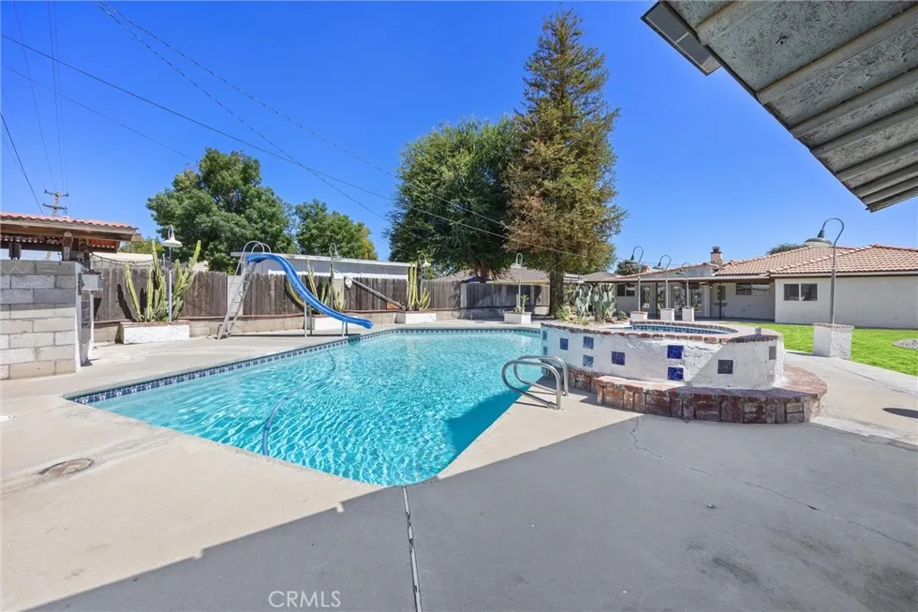 Unicorn property alert, prepare to be impressed! This beautifully updated Olive Estates pool home blends charm, space, and modern upgrades on over a 1/4 acre lot in Northwest Bakersfield. Featuring a tile roof and a spacious layout with 3 bedrooms, 2 bathrooms, a formal living room, separate family room, office, game room addition, and a fun attic play area for kids. Inside, enjoy fresh paint, new wood-look vinyl flooring, upgraded baseboards, recessed lighting, and a tankless water heater. The chef's kitchen boasts granite counters, an island, and stainless appliances. The main bathroom showcases porcelain tile, dual showers, and dual vessel sinks. The backyard is an entertainer's dream with a custom deck entry, built-in fire pit, heated replastered spa and pool, and a built-in BBQ area. RV parking fits multiple vehicles and includes a charging outlet. This rare Olive Estates gem offers both comfort and lifestyle, truly a must-see!