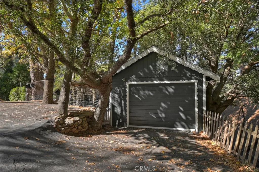 Adorable cabin in the woods that checks all the boxes including a garage and walking distance to the lake! Offering an abundance of natural light with custom features from an era gone by such as original knotty pine interior walls that fill the space with charm and character. A stone fireplace anchors the large living area and natural gas heating warms the rest of the home. Another amazing feature is the large gated usable yard with two entertaining decks plus a flat cement porch outside your front door. If you love to garden, there is a large, terraced space on one side of the house with good sun to grow flowers or food. In front of the home is another area that is ready to make your own with flowers, ground cover like vinca flowers, mulch, or just more space to enjoy. You will love the detached garage to tinker around or park your vehicle with a door that opens to the yard and walk to the front door. There is more parking space in front of the garage and in front of the home. PLUS, a large storage room underneath the garage that can serve as a man cave, workshop, craft room, gym, or maybe extra guest room since it has a door and windows. The home is freshly painted inside and out with brand-new carpet and vinyl flooring throughout. A half bath is conveniently located off the kitchen and full bath downstairs with your two bedrooms and laundry room. A wall of storage space with beautiful wood doors lines the hallway. There is also an exit door to access your lower deck and the yard. If you have pets, they will absolutely love the huge yard to run and play with peace of mind