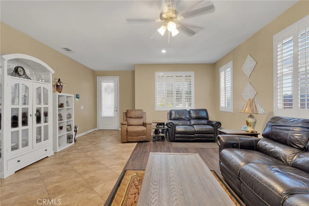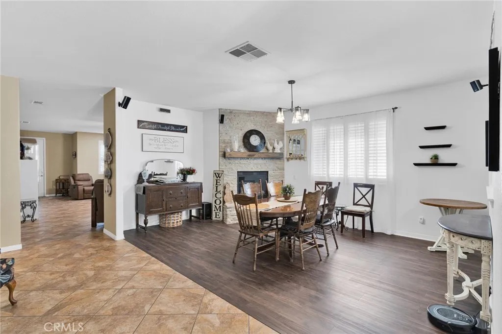 Bright, Comfortable, and Perfectly Set Up for Everyday Life. This single-story charmer has all the space, style, and comfort youve been looking for! With over 2,000 sq ft of living area, this 3-bedroom, 2-bath home features a layout that just makes sense an open kitchen with light cabinetry, granite tile counters, and plenty of prep space, plus both a formal dining area and separate living and family rooms. The family room fireplace and warm wood flooring create an inviting atmosphere for everyday living. Step out back to a large covered patio designed for easy entertaining and weekend BBQs. The 3-car garage offers extra room for storage or hobbies, and the low-maintenance front yard keeps your weekends free for fun. Situated in a great neighborhood near shopping, schools, and commuter routes this is the kind of home that feels good the moment you walk in.