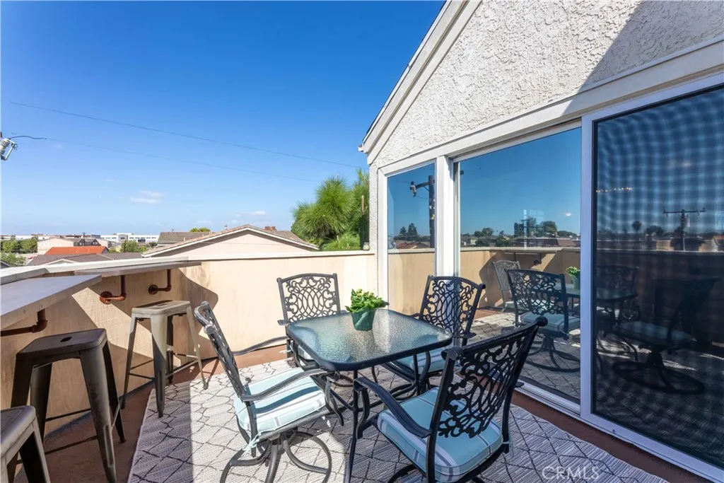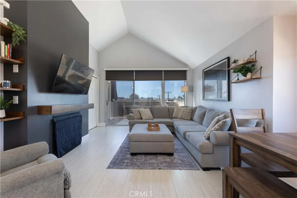 Price Improvement! Welcome to this beautifully maintained 2-bedroom, 1.25-bath corner unit in highly desirable Los Alamitos, offering 915 sq. ft. of comfortable living space in one of the areas top-rated school districts. Perfectly positioned on the top floor, this light-filled condo captures the essence of SoCal coastal living with an inviting layout, thoughtful updates, and a coveted corner location that ensures both privacy and serenity. Step inside to find vaulted ceilings and laminate wood flooring that enhance the spacious open-concept living and dining areas with wall-to-wall sliding glass door and windows that have been tinted to keep things cooler on warmer days with custom shades to let in light whenever you want. The cozy fireplace creates a warm focal point for relaxing evenings, while sliding glass doors open to a large private patioperfect for morning coffee or taking in the colorful Southern California sunsets. The updated kitchen features modern stone-look countertops, ample cabinet space, a garden window, counter depth stainless steel fridge and dishwasher, gas range, and easy access to the dining area. A nearby laundry closet with in-unit washer and dryer hookups adds extra functionality and ease and washer/dryer appliances are included. Both bedrooms are generously sized, with large closets and plenty of natural light. The primary suite includes a walk in closet w/ensuite vanity that connects to a full bath and toilet tastefully finished with neutral tones and updated fixtures; there is an additional separated vanity on the opposite side of that shower an