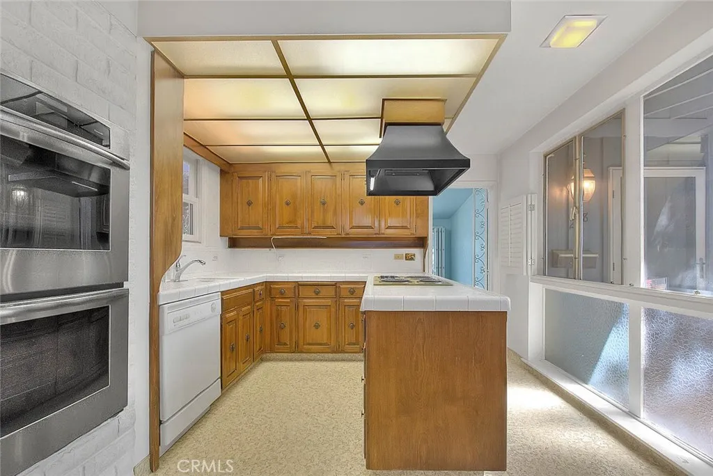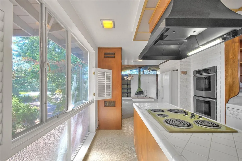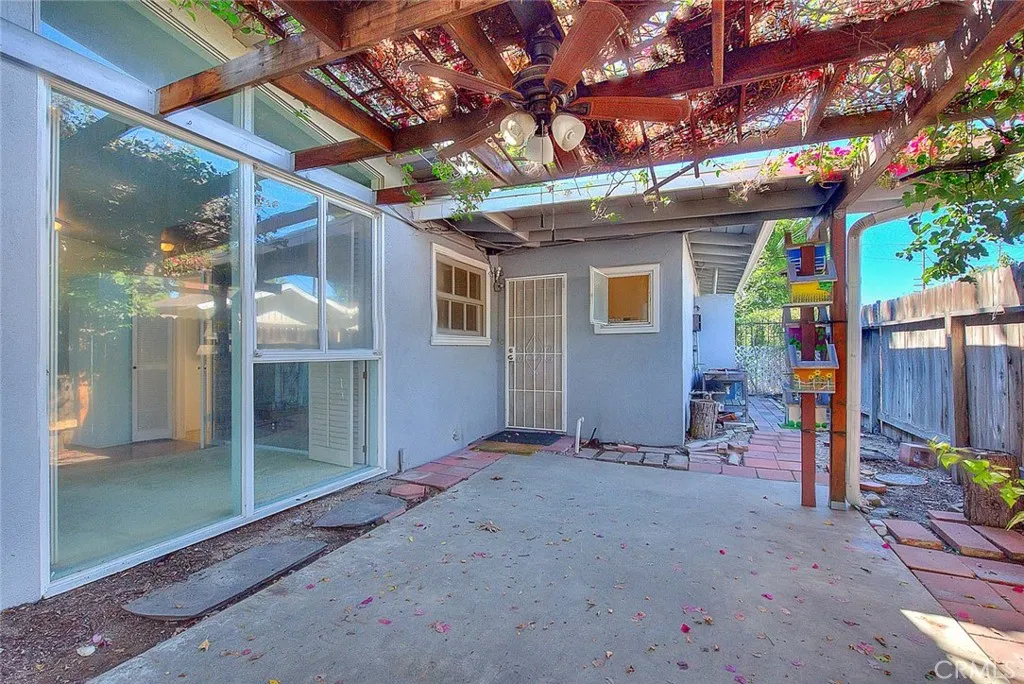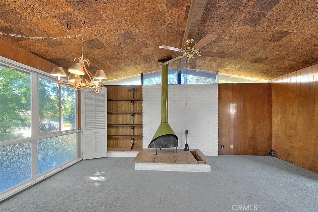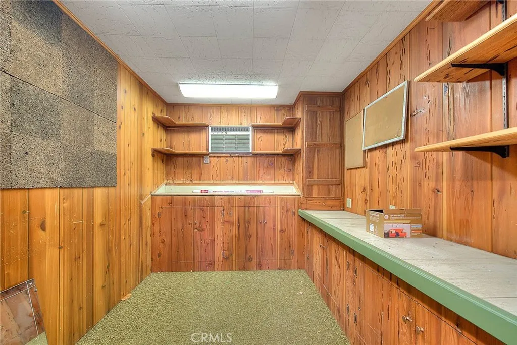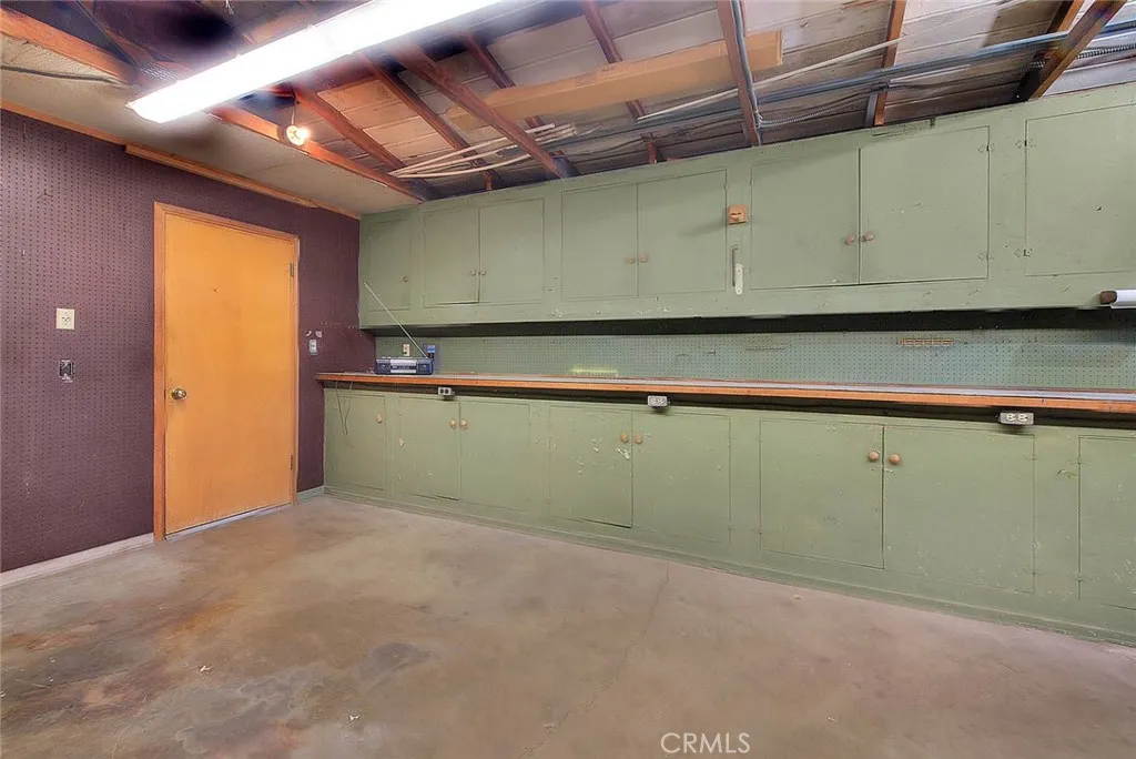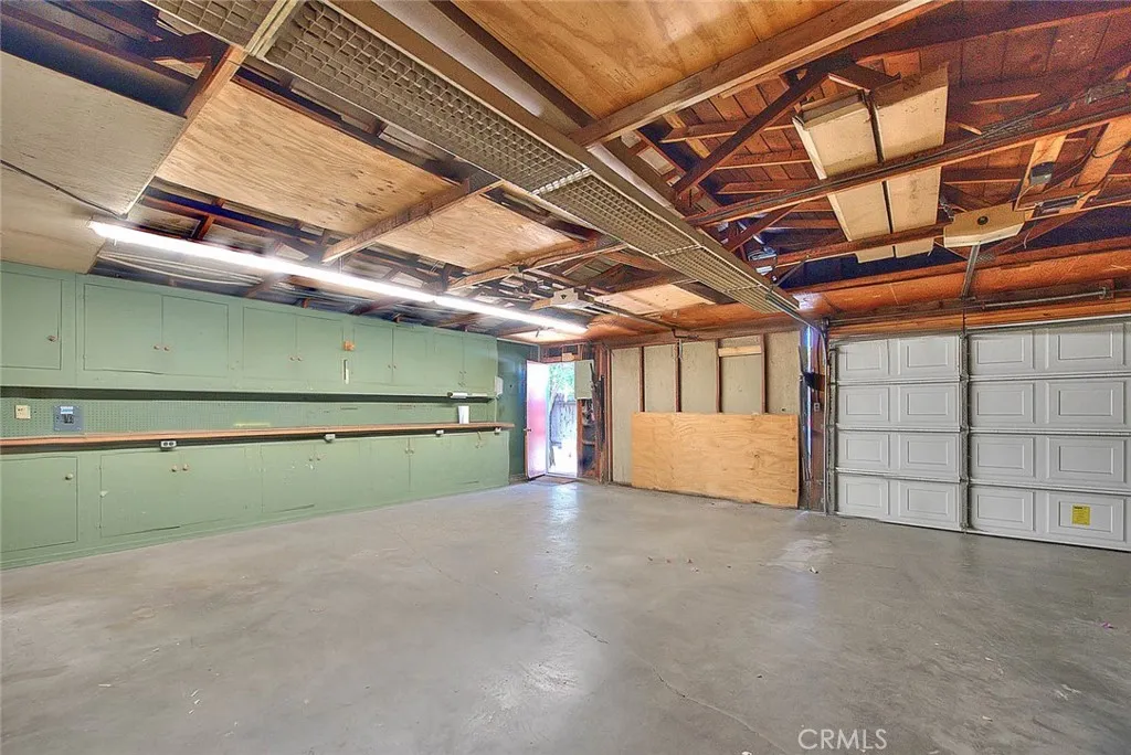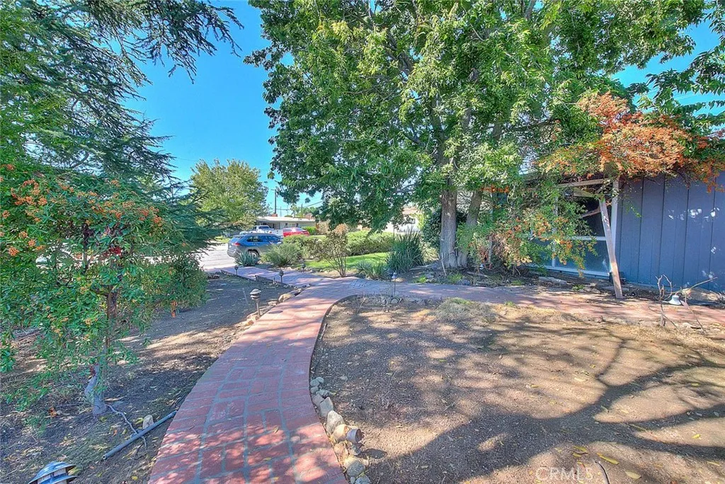 Fantastic Mid-Century home with HUGE detached oversized garage (approximately 900 sq ft) that could have possible ADU potential! (Buyer must verify) Located in the desirable City of Upland this home enjoys 3 bedrooms, 1 1/2 bathrooms, a spacious living room with rock fireplace and a sizeable family room with a second fireplace. High ceilings in the entertaining spaces of the home create an inviting and open atmosphere. For those who love mid-century architecture this home is sure to please, it showcases fabulous windows throughout that bring in an abundance of natural light, built-ins that offer wonderful storage right as you enter with an oversized closet, the hallway boasts linen cabinetry, off the kitchen there is large bank of cabinets that could be used as pantry/or other storage needs and there is additional storage near the laundry area and 1/2 bathroom. There are shutters in almost every room that allow for privacy when not enjoying the daylight or sunny times of the day. The kitchen has a charming brick accent wall, plenty of counter space to work, double ovens, electric cooktop and opens to the family room which also features space for dining. Side patio offers an outdoor space to enjoy and mature trees on the property create a private setting for this wonderful property. The garage is IMPRESSIVE, with so many options! If home business needs require extra storage or work space this garage will meet those needs! Extensive built-ins, work counters, plus an enclosed additional storage room within the garage, SO MUCH SPACE. Conveniently located just a short drive from