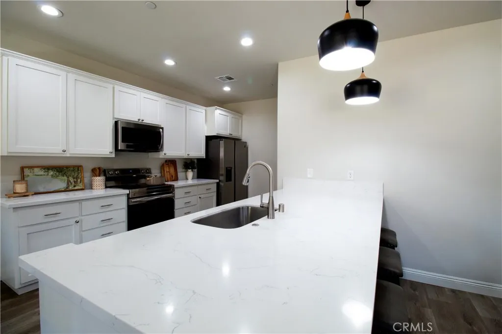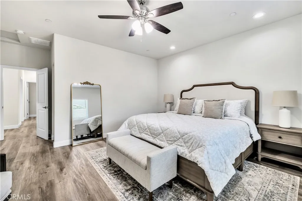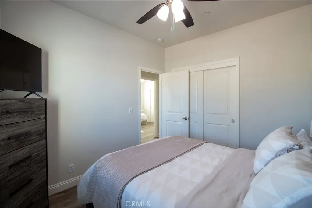 Built in 2022, this 4-bedroom home offers modern efficiency, clean design, and turnkey comfort in one of Ridgecrests most desirable neighborhoods. A bright, open floor plan welcomes you with 9 ft. ceilings, an oversized great room, luxury vinyl plank flooring throughout (no carpet), and a kitchen featuring quartz countertops, stainless steel appliances, and a walk-in pantry. The primary suite includes a large walk-in closet, dual-sink vanity, and a custom tiled shower with dual shower heads and a private water closet. This all-electric home includes a fully paid 22-panel / 8kW Enphase solar system with a 25-year warranty, plus a California 2-10 home warranty. Smart-home upgrades include ADT security, Nest doorbell, MyQ garage controls, a Tesla charger, and structured wiring in all bedrooms and living areas. The pool-sized backyard offers room to personalize, and the property includes RV parking, as well as washer, dryer, and refrigerator, making this a standout newer-construction opportunity.