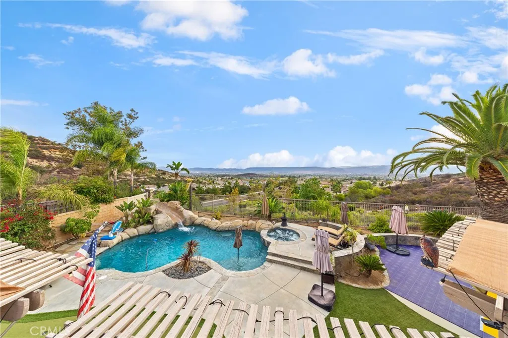 Welcome to this stunning 6-bedroom, 4-bathroom home with SOLAR nestled in the prestigious, guard-gated community of Greer Ranch in Murrieta, CA. Perfectly situated on a quiet cul-de-sac, this residence offers breathtaking panoramic views, exceptional upgrades, and a true entertainers backyard oasis. Step inside and youll immediately notice the abundance of natural light and elegant finishes throughout. The open-concept floor plan features a spacious living area that seamlessly connects to the gourmet kitchencomplete with modern appliances, granite countertops, and ample cabinetry. Downstairs, youll find two bedrooms, one with its own private full bathroom, ideal for guests or multi-generational living. Upstairs, four additional bedrooms and a large loft provide space for relaxation, work, or play. The primary suite is a luxurious retreat, showcasing a custom-designed bathroom with a unique shower and sauna combo, creating a spa-like experience in the comfort of your own home. Step into the backyard and discover your private paradise a sparkling pool and spa, a built-in putting green, and a basketball court, all surrounded by scenic hillside views and lush landscaping. Whether hosting gatherings or enjoying a quiet evening under the stars, this outdoor space has it all. Greer Ranch is known for its 24-hour security, scenic walking trails, parks, and community pool and clubhouse, offering the perfect blend of privacy and community living. Conveniently located near award-winning schools, shopping, and easy freeway access, this home truly has it all.
