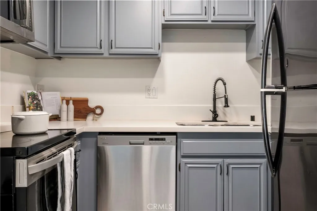 Experience elevated comfort and modern sophistication in this impeccably upgraded 2-bedroom, 2-bath second-story corner end-unit residence located within the prestigious gated enclave of Park Ridge. Set amid mature trees and directly across from Craig Park, this home offers an atmosphere of serenity and exclusivity. The bright, modern design is enhanced by vaulted ceilings, abundant natural light, and a seamless flow between living spaces. Two luxurious primary suites, each with a private ensuite bath and spacious closets, provide the perfect balance of style and privacy. The gourmet kitchen features stainless-steel appliances, recessed lighting, and complete with a Dishwasher, Electric Oven Range, and Refrigerator ready for your love of cuisine and culinary entertainment. Custom upgrades include laminate flooring, custom recessed lighting, smart thermostat Central A/C control which all ties with your elegant contemporary finishes throughout. Step onto your Primary ensuite bathroom with a private balcony to enjoy tranquil treetop views and evening breezes. The community offers resort-style amenities including a sparkling pool and spa, tennis and basketball courts, fitness center, and clubhouse. A private detached garage and ample guest parking provide exceptional convenience. HOA dues cover water, gas, trash, and community maintenance, ensuring a carefree lifestyle. Ideally situated near Cal State Fullerton, Brea Mall, Downtown Fullerton, and major freeways, this home delivers effortless access to shopping, dining, and entertainment. Discover the perfect blend of luxury, lo