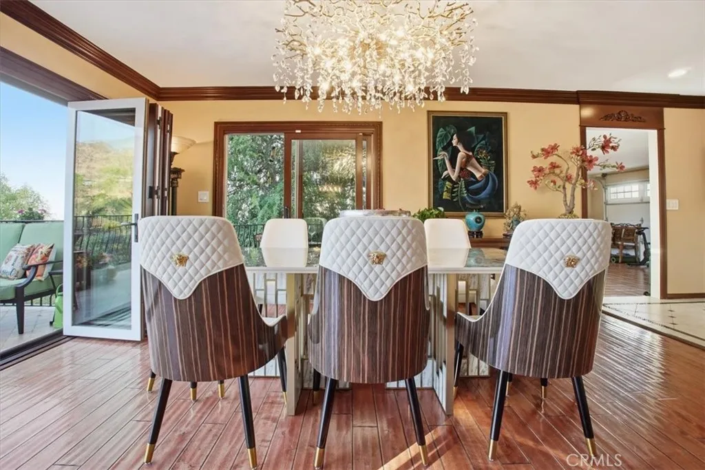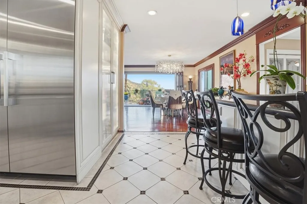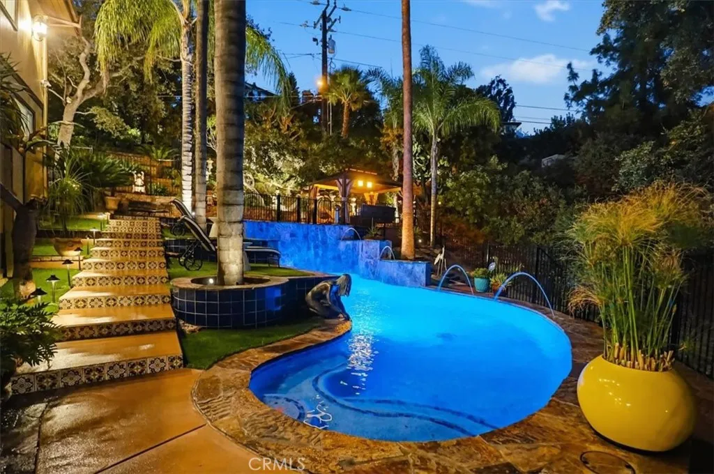 Extraordinary Monrovia Hillside Retreat with Unmatched Views The views are the story at this extraordinary Monrovia hillside retreat. From nearly every room, enjoy sweeping, unobstructed vistas of city lights, rolling hills, and distant mountainsa breathtaking panorama that defines elevated Southern California living. Designed to maximize its incredible setting, the home features dramatic accordion-style doors that open the main living area to a newly built terrace that features an electric retractable awning, creating a seamless indoor-outdoor flow that blurs the line between home and horizon. Step inside to a warm and inviting living room with an elegant fireplace and rich flooring that extends into the dining area and beyond. The expansive kitchen is a chefs dream, featuring an upgraded Wolf cooktop, custom built-in Miele refrigerator, double ovens, wine fridge, bar with TV, and sophisticated finishes that complement the homes architectural elegance. Every detail throughout reflects modern luxury and refined design. The main level includes three generous bedrooms, each with mirrored closet doors, abundant natural light, and timeless flooring. Bathrooms feature walk-in showers, stone countertops, and high-end finishes. Upstairs, the primary suite is a true sanctuarycomplete with a private balcony overlooking the city that connects to an additional retreat room for additional relaxation, a spa-inspired bathroom with dual sinks, walk-in shower, vanity area, and spacious walk-in closet. Outdoors, your private resort awaits. A newly resurfaced Pebble Tec pool, brand-new hot t