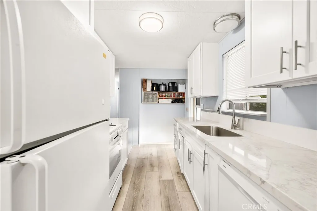 Welcome to Sierra Dawn Estates! Discover this beautifully refreshed 2-bedroom, 2-bath home situated on a spacious corner lot in one of Hemets most desirable 55+ communities. This move-in-ready residence features a recently renovated kitchen with sleek quartz countertops, modern cabinetry, and stylish finishes. The interior boasts new luxury vinyl plank flooring and fresh interior paint, creating a bright, modern feel throughout. Enjoy comfortable living spaces filled with natural light and a functional layout perfect for everyday living or entertaining. Additional highlights include washer and dryer hookups, a covered carport with parking for two vehicles, a large extended driveway, and a private backyard ideal for relaxing or outdoor gatherings. Residents of Sierra Dawn Estates enjoy access to multiple clubhouses, swimming pools, a spa, fitness center, and a full calendar of social activities, all within a friendly, well-maintained community. Move-in ready, beautifully updated, and set on a larger corner lot with a private backyard and extended driveway this home is a must see!
