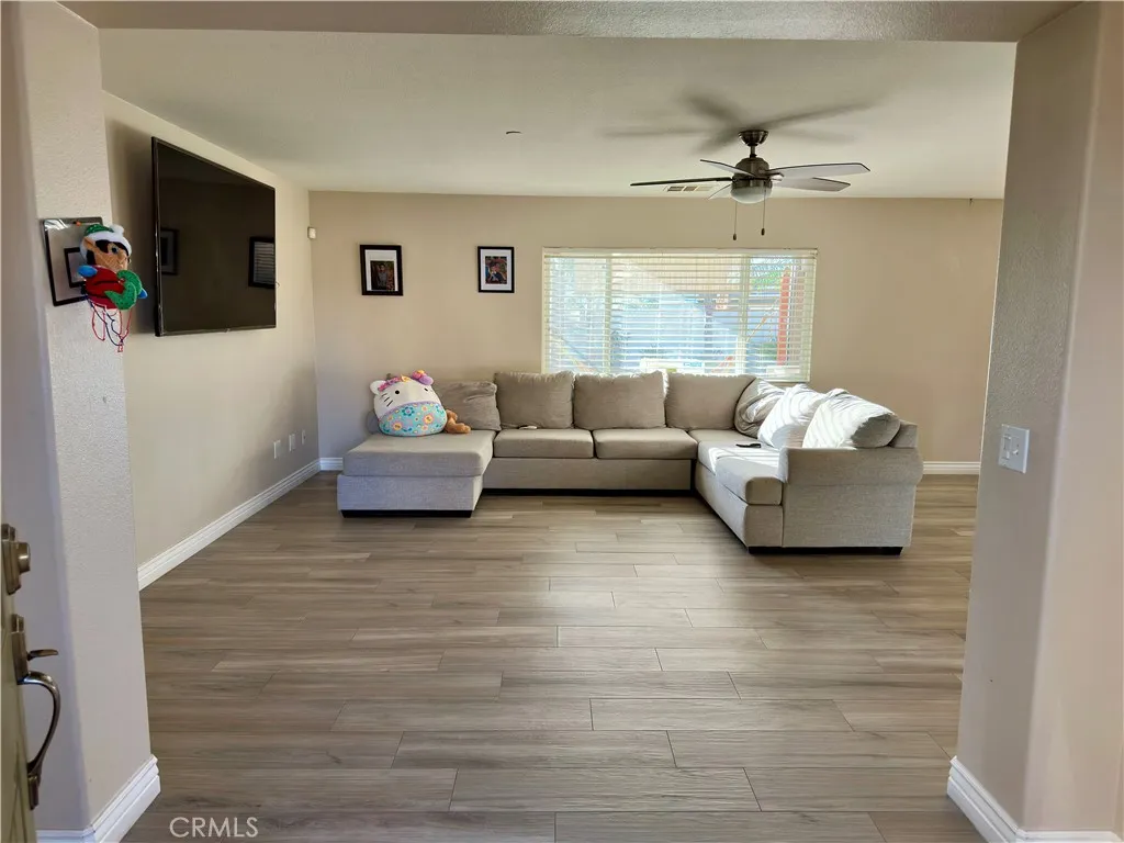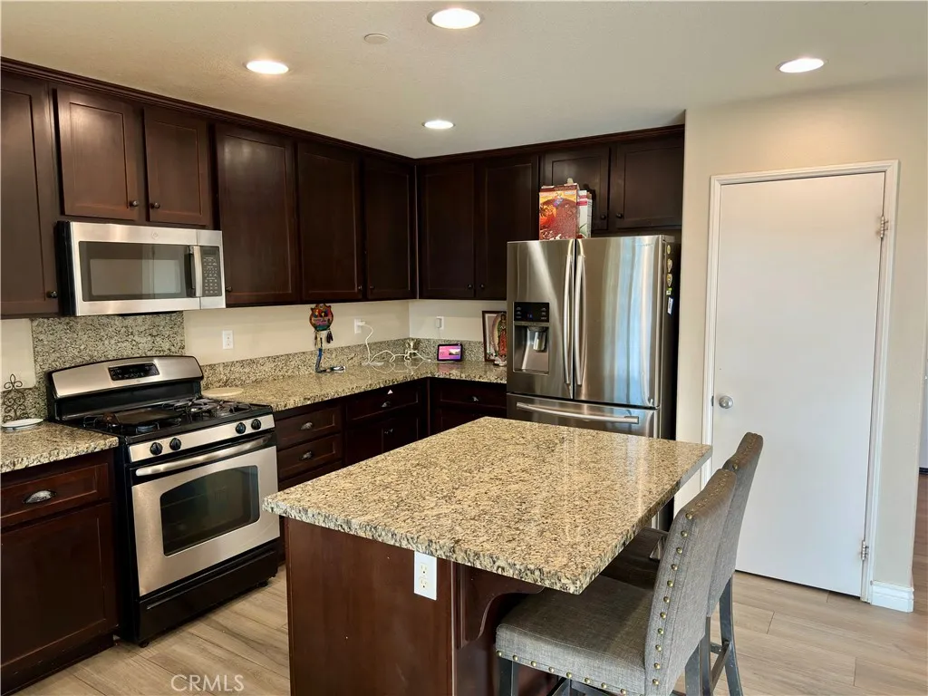 Welcome to this beautifully maintained home in the heart of Perris, offering the perfect blend of modern style and everyday functionality. Step inside to discover elegant laminate flooring, granite countertops, and recessed lighting that brighten up the spacious open concept layout. The kitchen is a true centerpiece, featuring a large granite top island, ample pantry space, and plenty of room to cook, gather, and entertain. A big laundry room across from the downstairs half bathroom adds practicality and convenience, while a walk in deep closet underneath the stairs offers extra storage. Upstairs, youll find a large entertainment area/living room perfect for movie nights or more space for the family to get together. Step outside to a beautiful backyard designed for entertaining, surrounded by lush, green trees that provide both shade and serenity. The front yard is equally inviting, creating great curb appeal. Located just minutes from local schools and popular shopping plazas, this home offers the ideal balance of comfort, style, and accessibility. This home is nestled in a well established neighborhood surrounded by newly built communities, highlighting the areas growing appeal and long term desirability.