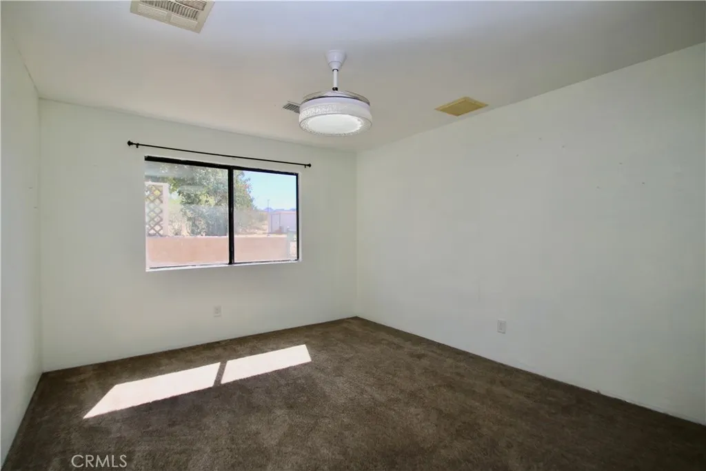 Spacious and inviting 3-bedroom, 2-bath home offering comfort, convenience, and desert charm! Featuring both a living room and family room with a cozy fireplace, this home provides plenty of space for relaxing or entertaining. The updated kitchen includes a stove, dishwasher, microwave, and refrigerator, making it move-in ready. Enjoy year-round comfort with natural gas central heat, air conditioning, and an evaporative cooler. Step outside to the covered patio overlooking the fenced backyardperfect for pets, gatherings, or simply enjoying the desert views. A storage shed adds extra space for tools or outdoor gear. Located just a short drive from Joshua Tree National Park, shopping, restaurants, and schools, this home also offers an easy commute to the 29 Palms Marine Base. Dont miss your chance to own this well-maintained desert retreatperfect as a family home, investment, or weekend getaway!