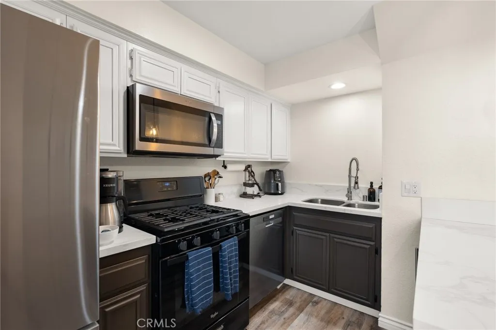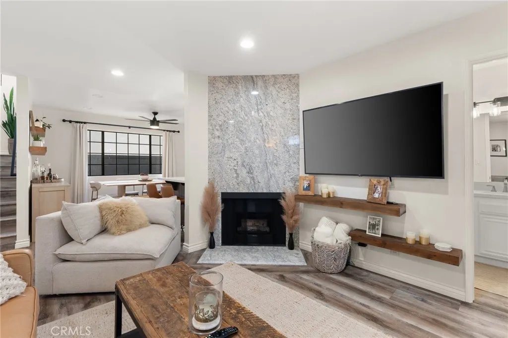 Absolutely Stunning! Step into this beautifully remodeled 2-bedroom, 2-bath townhome-style condo that perfectly blends modern design with everyday comfort. From the moment you walk in, youll notice the wide-plank laminate flooring, fresh designer paint, and large picture windows that flood the home with natural light. The spacious living room is warm and inviting, featuring a tiled fireplace and direct access to a private patio ideal for dining al fresco or soaking up the sun. The modern kitchen is a showstopper, showcasing a sparkling quartz island, pendant lighting, wine fridge, new sink, and stainless steel refrigerator everything you need to entertain in style. The adjacent dining area is bathed in soft light from an oversized window, creating the perfect setting for intimate dinners or morning coffee. Upstairs, the arched windows and in-hall laundry add both character and convenience. The primary suite feels like a private retreat with a large walk-in closet, private balcony, and en suite Jack & Jill bath. The secondary bedroom offers plenty of space, complete with a generous closet and sliding doors. Additional highlights include two side-by-side parking spaces and access to community amenities such as a barbecue area, jacuzzi, and sun lounge deck perfect for relaxing weekends at home. Located close to shops, restaurants, and the beach, this home offers the best of coastal living and modern comfort. Welcome home this one is not to be missed!