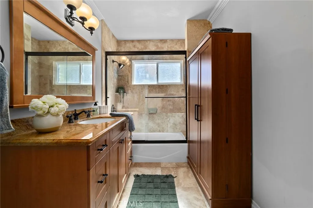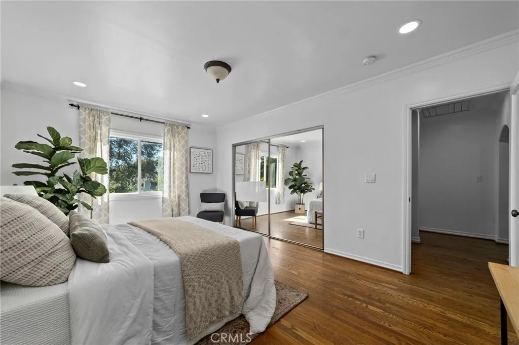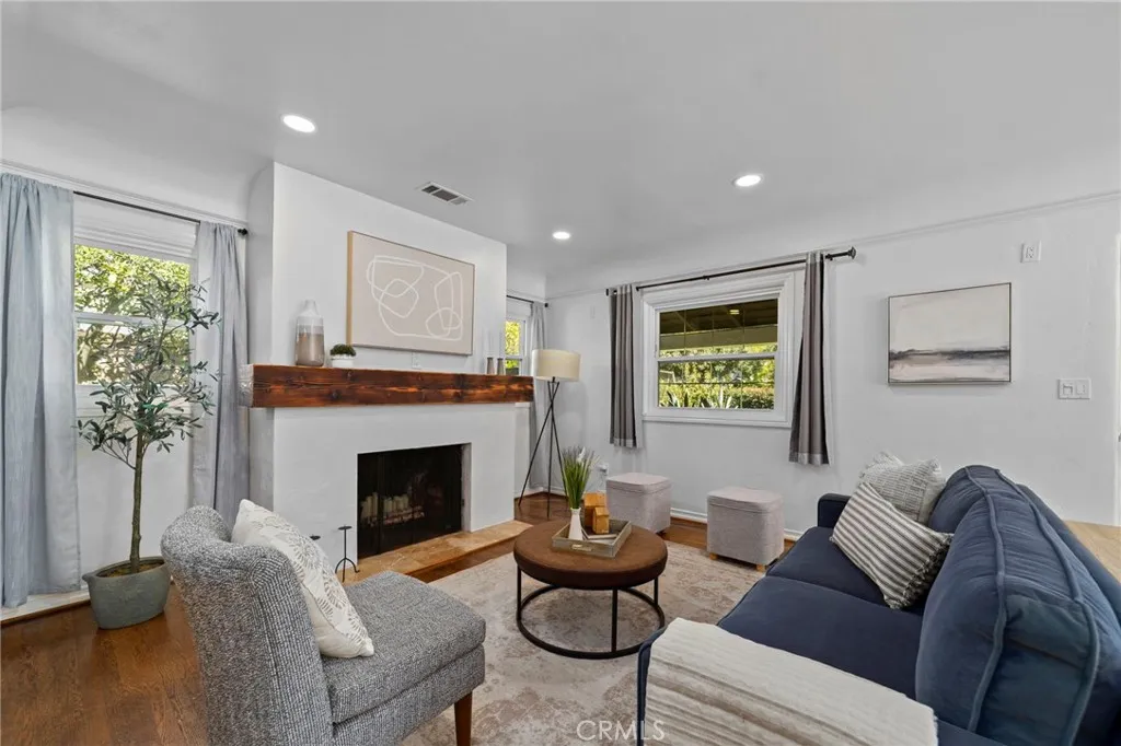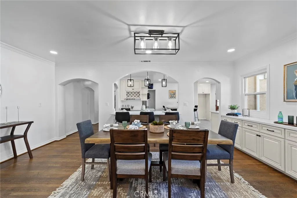 Located in highly sought-after unincorporated Pasadena, this property offers versatility, comfort, and thoughtful design throughout. The main home includes 3 bedrooms and 3 bathrooms across 2,152 sq ft of living space, featuring curved ceilings and archways that connect the living room with fireplace to the family room and dining area. The dining room opens to a large kitchen with an extended island, a Viking Professional 6-burner range with griddle and hood, wine refrigerator, and a reverse osmosis hot water tap at the sink. Two of the bedrooms provide direct access to the covered back patio, where mature wisteria vines create a comfortable outdoor setting for dining and relaxation. Off the kitchen, a finished bonus basement with its own mini-split HVAC offers an ideal space for an office, gym, studio, or additional living area. Situated on a corner lot just under 11,000 sq ft, the property includes raised garden beds, a play area, RV parking, an electric driveway gate, and easy-to-maintain front yard landscaping. A self-filling dog water bowl is integrated into the yard, making outdoor living convenient for pets. Additional features include paid-off solar and a sauna. The garage offers two car parking along with a studio complete with a kitchenette and bathroom, providing flexibility for guests, extended family, rental, or workspace needs. This is a well-designed property offering both indoor comfort and valuable outdoor amenities in a desirable Pasadena location.