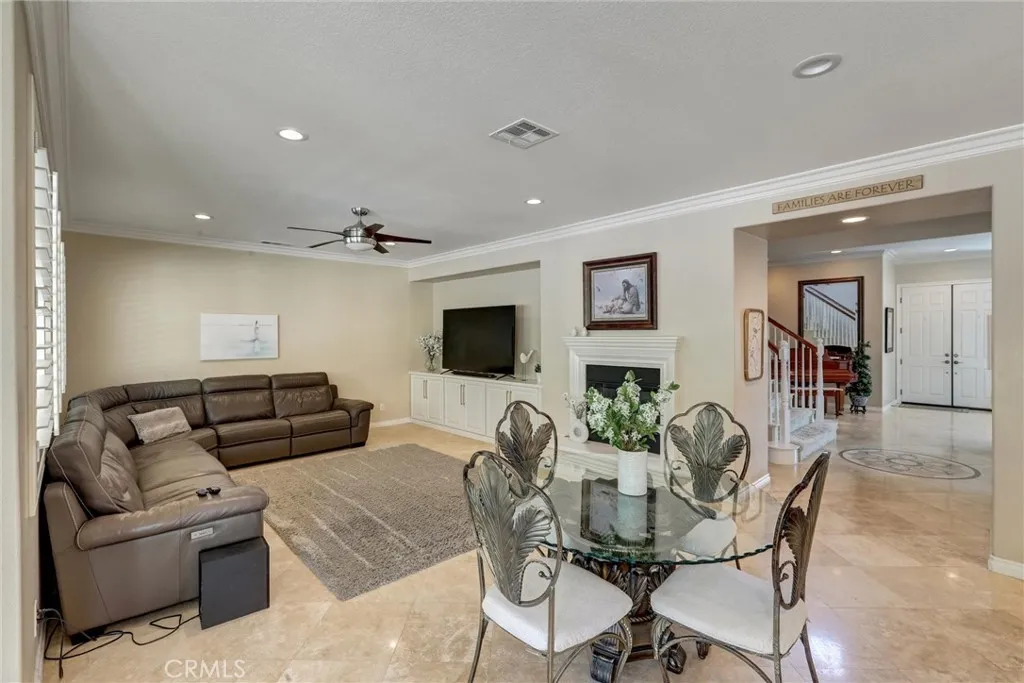 WEST SIDE MURRIETA BEAUTY! An extraordinary opportunity to own this rare over 4,000 sq.ft., 6-bedroom, 4.5-bath pool home, perfectly situated on nearly a third of an acre in Murrietas exclusive west side. Built by Pulte Homes in 2005, this residence blends luxury, comfort, and entertainment with an impressive list of upgrades. Main Level Highlights: Grand vaulted entry and formal living room with fireplace, Elegant formal dining room with coffered ceiling, Fully remodeled island kitchen featuring beautiful stone (dolomite) countertops, refinished cabinetry, stainless steel appliances, deep stainless sink, and walk-in pantry, Spacious family room with fireplace, custom built-in cabinetry, and large-screen TV niche, Office/bedroom with French doors to the patio plus a second bedroom, both served by a full bath with walk-in shower, Guest powder room, Laundry room with built-in sink and cabinets. Upstairs Retreat: Private primary suite with spa-like bath: dual vanities, walk-in shower, oval soaking tub, makeup vanity, and expansive walk-in closet, Large loft suitable for a pool table, Three generous sized bedrooms: one with private full bath, two sharing a Jack & Jill bath, and Private home theater with screen, projector, surround sound, and reclining seats. Outdoor Paradise: An entertainers dream with solar or gas-heated pool & spa, firepit, volleyball court, putting greens, and a large covered patio with built-in BBQ, fridge, and panoramic views of the hills and neighboring Skyes Ranch Park. Additional Features: Travertine flooring downstairs, crown molding, hardwired alarm s