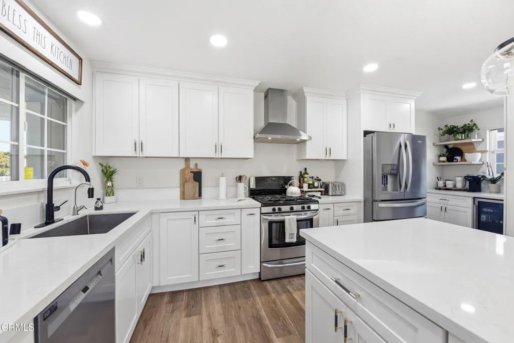 A Rare Find with Endless Possibilities!This true single-story, 4-bedroom, 2-bath turnkey 1499 sqft home sits on a sprawling 9,000+ sqft usable corner lot--a rare opportunity in today's market at this price! The property offers RV parking with water and 220V hookups plus potential to build an ADU.Enjoy an open-concept, highly upgraded interior featuring a quartz island kitchen with soft-close cabinetry, stainless steel hood and gas range, newer dishwasher, and 2025 Whirlpool refrigerator. Additional highlights include a built-in coffee bar with beverage fridge, deep sink with reverse osmosis, and custom pull-down shades. Cozy up by the fireplace or gather around the large kitchen island. HDMI cables are pre-run in the attic for a clean, modern setup.Upgrades include raised ceilings, recessed lighting, LVT flooring, dual-pane windows, PEX plumbing, new ducting, and a 200-amp electrical panel with subpanel for A/C. The garage features a new 2025 door, side-mount motor, and added cabinetry for storage.Step outside to a freshly renovated backyard with new concrete, a custom 55-foot batting cage, and ample space to relax or entertain under the beautiful Camarillo sunsets.This home truly checks all the boxes--updated, spacious, and ready for your RV, ADU, or future expansion dreams!