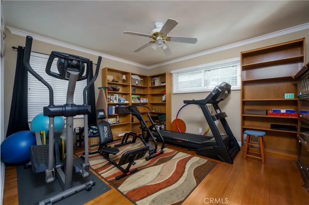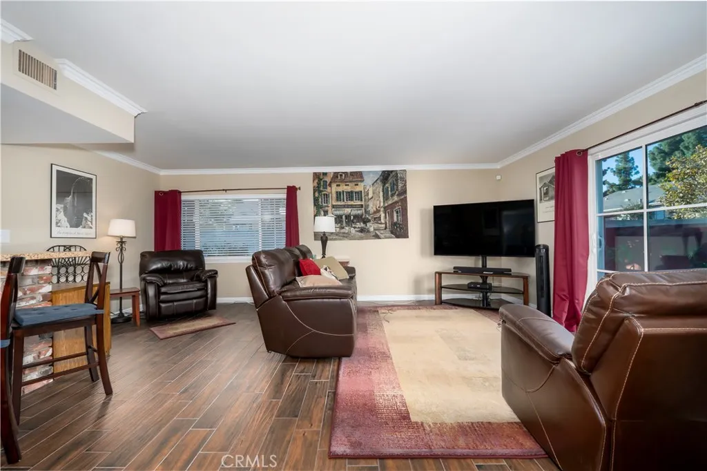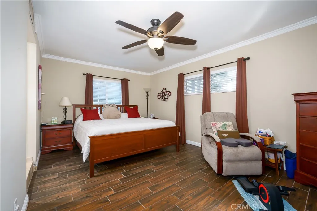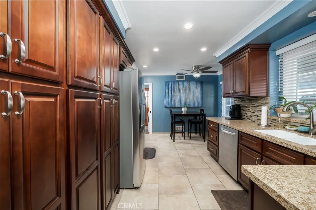 First time on the market in 40 years! Welcome home to this beautiful 4-bedroom, 2.5-bath residence offering 2,138 sq. ft. of comfortable living space. Recently upgraded just six years ago, this home features elegant crown molding throughout and a modernized kitchen with ample storage and a cozy breakfast nook. Enjoy the spacious living and dining area complete with a warm fireplace, plus a den with a built-in barperfect for entertaining. Each bedroom offers generous space and ceiling fans for comfort, while the private main suite includes a walk-in closet. Step outside to a serene and private backyard ideal for relaxing or gatherings.