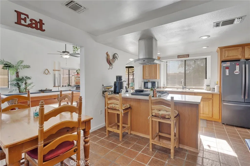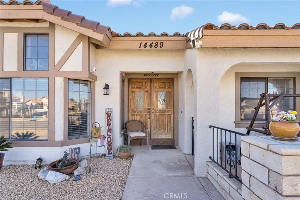 Located in the resort community of Silver Lakes, this 3-bedroom, 2-bath home offers 1,614 sq. ft. of comfortable living space. Situated across from fishing hole number three and offering a peekaboo view of the lake, this home provides a peaceful setting with convenient access to community amenities. The property features a rockscape front yard, tile roof, and a covered front porch with an iron gate. Inside, the living room, dining area, and kitchen feature tile flooring, while the bedrooms are carpeted. The kitchen includes a gas cooktop, refrigerator, and ample cabinet and storage space. The primary bathroom offers decorative tile counters and shower, and there is additional hallway storage for convenience. Additional highlights include washer and dryer in the garage, a new A/C unit installed in 2023, and a 20 x 33 garage with room for storage or workspace. The spacious backyard offers RV parking and plenty of room for outdoor use. HOA dues are currently $235 per month, which includes unlimited use of community amenities such as golf, clubhouse, pool, lakes, and more. This home is move-in ready and located in a desirable area of Silver Lakes.