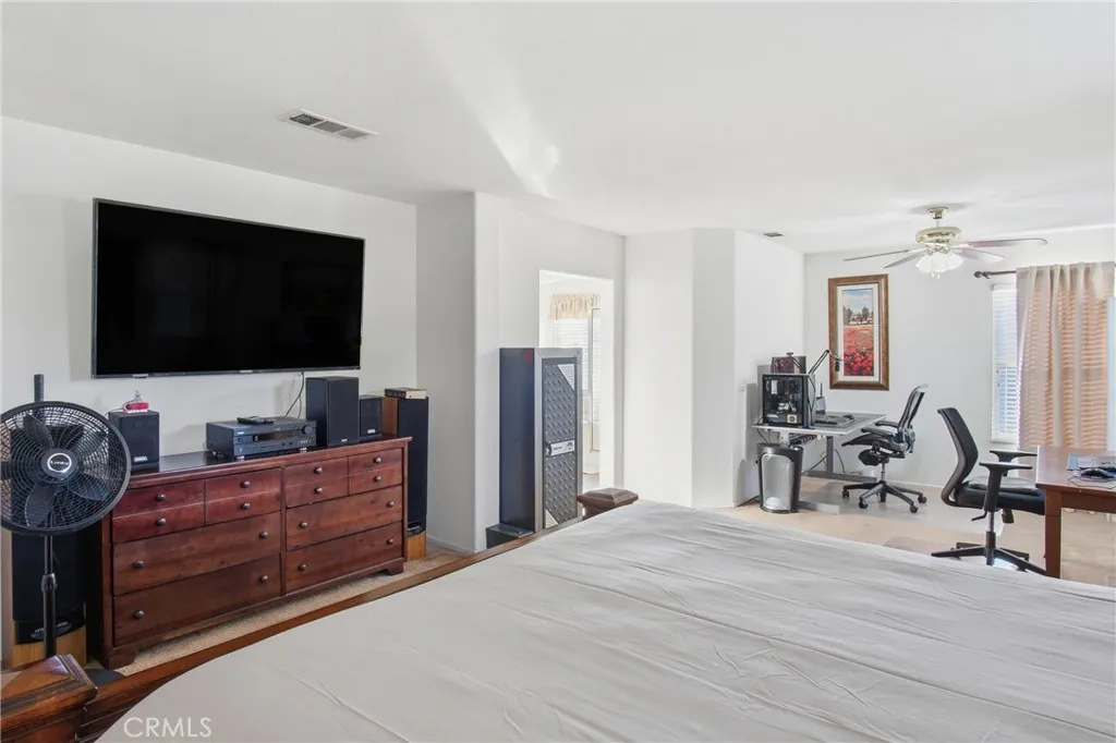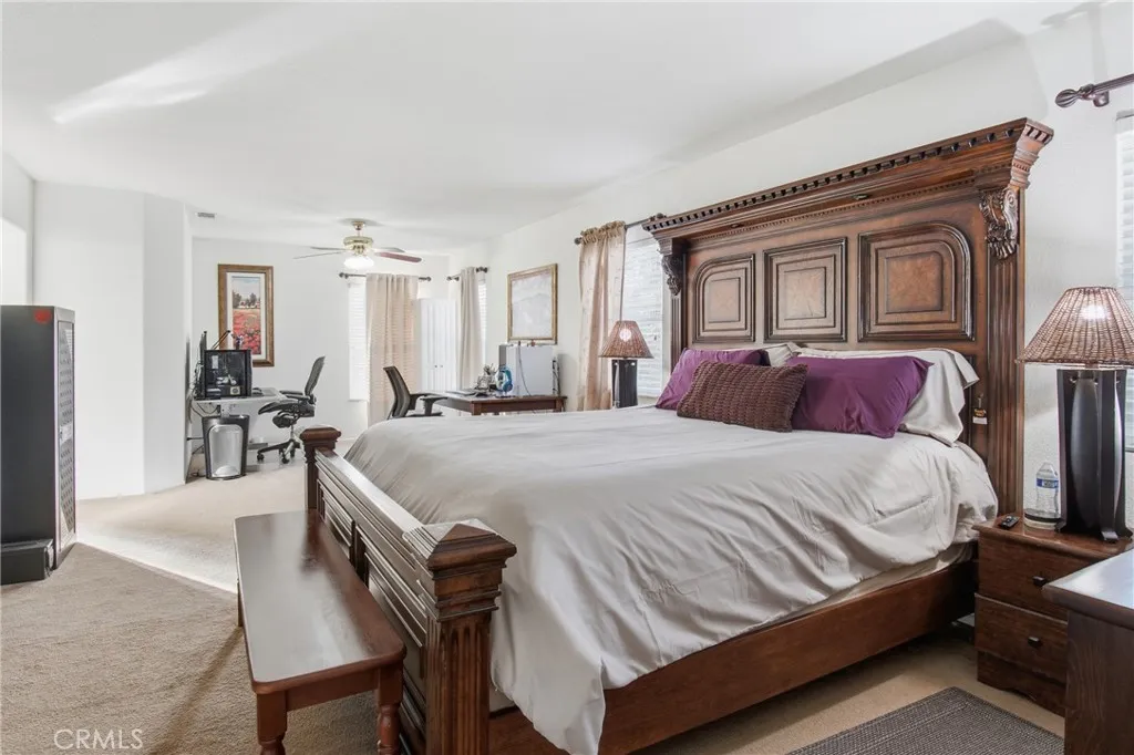 Welcome to this stunning two-story home located in a highly sought-after community of Victoria Grove! This stunning two-story residence sits on a premium corner lot with minimal immediate neighbors, offering extra privacy and a rare sense of space. With 5 bedrooms, 3 bathrooms, and over 3,100 sq ft, this home perfectly blends comfort, elegance, and functionality. Step inside to a bright and airy living room filled with natural light from oversized windows. The formal dining area flows seamlessly into an upgraded kitchen featuring an extended island, abundant cabinet space, and generous countersideal for meal prep or entertaining. The large family room, complete with a cozy fireplace, provides the perfect setting for gatherings and movie nights. Downstairs also features a main-floor bedroom and a recently updated full bathroom, perfect for guests or multi-generational living. Upstairs, a spacious loft offers endless possibilitiesgame room, office, or second living space. The primary suite is a true retreat, featuring a walk-in closet, dual vanities, soaking tub, and separate shower, with enough room for a private sitting area, nursery, or workspace. Three additional bedrooms round out the upper level, providing flexibility for family, guests, or a home office setup. Outside, enjoy your low-maintenance backyard with drought-tolerant landscaping, established fruit trees, and RV parkingready for entertaining, relaxing, or weekend projects. The three-car garage offers ample space for storage, vehicles, or a workshop. Victoria Grove residents enjoy access to resort-style amenitie