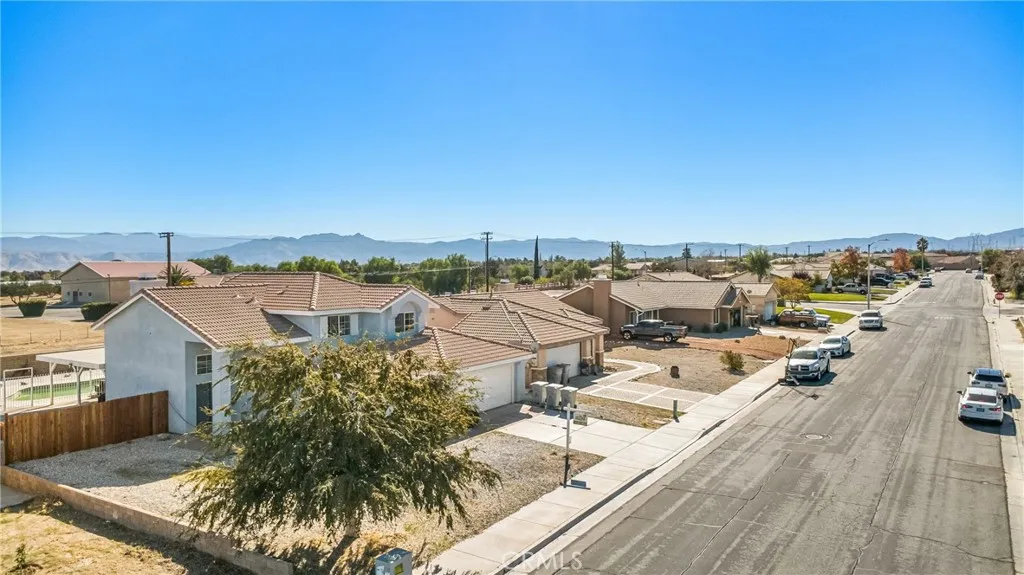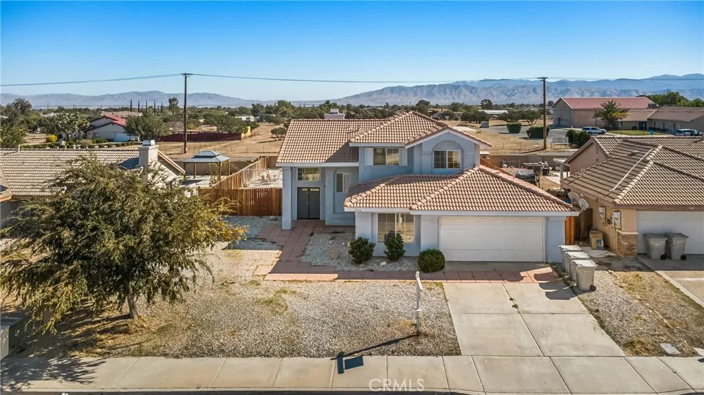Welcome to this beautifully maintained 5-bedroom, 3-bathroom pool home located in a desirable Hesperia neighborhood! With over 2,100 sq. ft. of living space on a 9,400+ sq. ft. lot, this home offers the perfect blend of comfort, style, and function. Step inside to a formal entryway leading to spacious living and dining areas filled with natural light. The open floor plan is ideal for family living and entertaining, with a comfortable flow between the kitchen, dining area, and family room. Enjoy the privacy of a downstairs bedroom and bath, perfect for guests or a home office. Upstairs, the primary suite features ample space, a private bath, and great views. Outside, enjoy your own backyard oasis complete with a sparkling pool and covered patioperfect for barbecues, gatherings, and relaxing in the desert sun. The low-maintenance landscaping and driveway with attached 2-car garage make this home as practical as it is beautiful. Conveniently located just minutes from the freeway, close to shopping, schools, parks, and dining, this home offers everything you need for comfortable living in Hesperia. No HOA No Mello-Roos