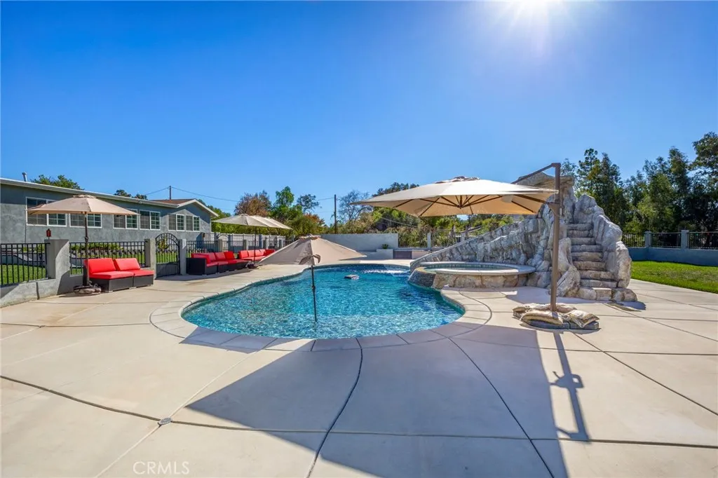 Private Ranch Estate on Over Two Acres Zoned A-1. Experience the best of country living with modern convenience at 30245 Santa Fe Street. This spacious single-story home sits on more than two acres of usable land offering wide-open space, privacy, and multiple improvements ideal for entertaining, multi-generation living, or hobby use. Interior Features: Bright and inviting floor plan with expansive living and dining areas, large kitchen with generous cabinet space and breakfast bar, walk-in pantry, 6 bedrooms and 3 bathrooms to accommodate family or guests, durable tile and laminated flooring throughout for easy maintenance, inside laundry, Energy-efficient home equipped with solar system for the residence. Outdoor Living: Sparkling in-ground pool with LED lights with a separate solar heating system for year-round enjoyment, spa, surround sound in pool area, detached pool house with a bathroom perfect for guests, home office, or studio use. An outdoor shower. Expansive covered patio with built-in-bbq, ideal for outdoor dining and relaxing with a fire pit. Additional seating area near the pool with an outdoor fireplace. Multiple RV hookups. Level 2 EV charger in the garage. Multiple storage units and outbuildings for tools, hobbies. Horse shed/corral. Wide driveway and gated access with plenty of room for RVs, boats, and trailers, fully fenced property with usable land great for animals, gardens, or expansion. Multiple fruit trees and a beautiful rose garden. Additional Highlights: Two solar systems (home + pool) to help lower energy cost Located in a quiet area of Hemet w