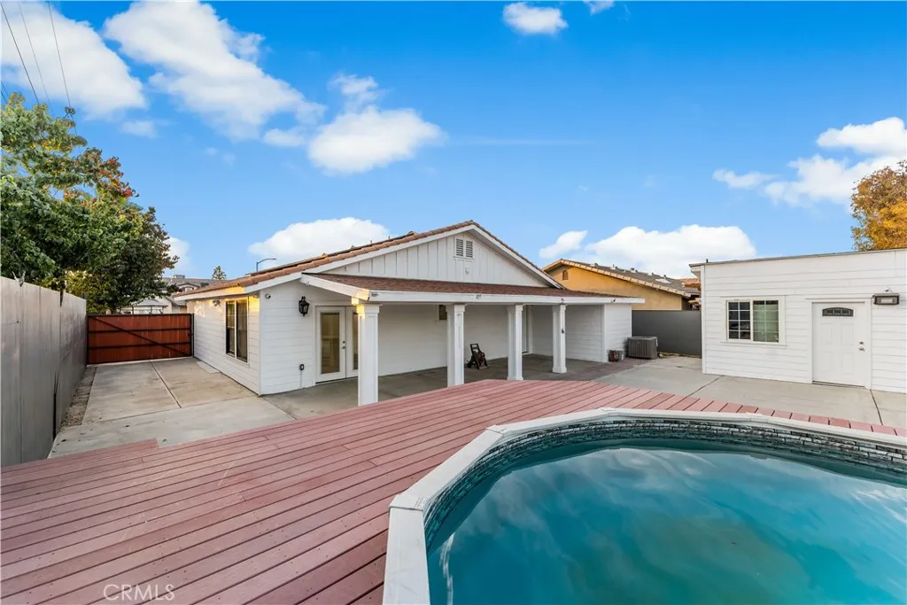 Welcome to 6418 Ringsdale Court, a true standout nestled at the end of a quiet cul-de-sac in one of Bakersfields most desirable neighborhoods. Sitting on an expansive 10,454 sq ft lot, this stunning 3-bedroom, 2-bath home has been transformed with over 85% premium upgrades, offering the kind of detail and craftsmanship you rarely see outside of luxury estates. From the moment you arrive, youll notice the striking curb appeal with IPE hardwood accenting the front exterior and a $3,500 custom oversized entry door that makes a lasting first impression. Inside, be greeted by engineered cedar wood flooring, elegant crown molding, and coffered ceilings that create an air of sophistication throughout. The open-concept kitchen is a dream come true, boasting Calacatta quartz countertops, a large island with waterfall edges, high-end appliances, and a walk-in pantry with a frosted glass door. Seamless design and luxury finishes continue into the living area, complete with built-in surround sound wiringalso extended to the master suite and covered patioperfect for entertaining or creating your own immersive media experience. The spacious primary suite features dual vanities, a spa-inspired layout, and abundant natural light. Additional highlights include dual-pane windows (installed in 2021), new copper plumbing, linear vents for modern elegance, a state-of-the-art AC system (installed in 2021), and a fully fire-resistant exterior clad in James Hardie siding for peace of mind. Outside, enjoy the low-maintenance raised deck, a pristine vinyl pool (installed just 3 years ago), and RV ac