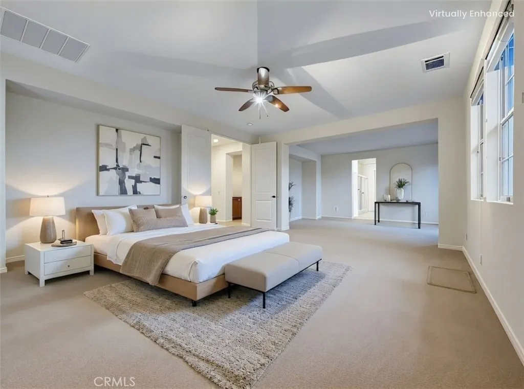 Discover this beautiful 4,305 sq ft home featuring 5 bedrooms, 4.5 bathrooms, and the rare convenience of dual staircases. A welcoming front porch leads to a private courtyard, creating a peaceful first impression. Step through the main front door into a grand foyer that sets the tone for the spacious layout. The living room offers elegant double French doors that open to the courtyard, while the separate dining room provides courtyard views and direct access to the kitchen. The island kitchen has granite countertops, a walk-in pantry, a built-in desk, and opens seamlessly to the family room with a cozy fireplace. Downstairs includes a private bedroom with a full bathroom, perfect for guests, along with an additional half bathroom for convenience. Each side of the home features its own staircase, enhancing flow and functionality. Upstairs, the primary suite impresses with a spacious sitting room, large walk-in shower, dual vanities, a center soaking tub, and a generous walk-in closet. A large loft, three additional bedrooms, two full bathrooms, and a laundry room with sink and cabinetry complete the second level. This home offers exceptional space, comfort, and thoughtful design throughout.