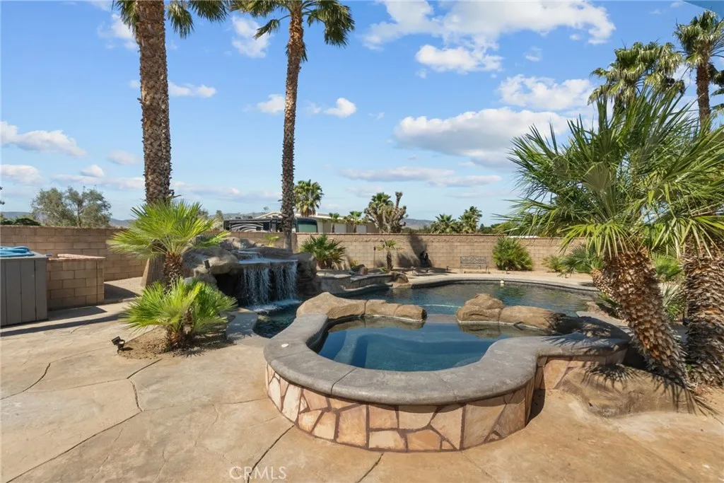 Welcome to your private oasis in the heart of Palmdale! This stunning 4-bedroom, 4-bathroom estate offers the perfect blend of comfort, luxury, and space on over 2 acres of land. From the moment you step inside, youll fall in love with the privacy and thoughtful design made for entertaining and everyday living. The open-concept layout showcases elegant travertine flooring, granite countertops throughout, and a grand fireplace as the centerpiece for gatherings. The chefs kitchen includes a spacious walk-in pantry and flows seamlessly into the formal dining roomperfect for hosting holidays and special occasions. The primary suite features a cozy fireplace with custom stonework, a spa-like bathroom with dual shower heads, new granite counters, and updated glass enclosures. Two additional bedrooms toward the back of the home share a fully upgraded bath. A bonus room with a full bath on the opposite side of the house offers flexibility as a guest room, office, or fifth bedroom. Step outside to a resort-style backyard complete with a built-in BBQ, mini fridge, sink, three ceiling fans, and retractable sunshadesideal for summer relaxation. Enjoy your own tropical paradise with a sparkling pool and spa featuring a grotto, waterfall, lighting, and heating. An outdoor shower and a nearby full bathroom add ultimate convenience. Car enthusiasts and hobbyists will love the 3-car garage with two car lifts and an attached ADUperfect for guests or rental income. The ADU offers a full upstairs bedroom and bathroom, plus a downstairs living area. Theres even an additional structure currently
