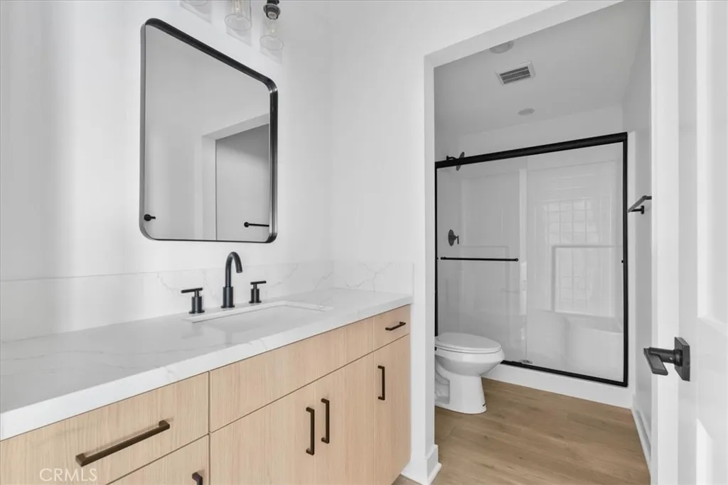 Welcome to Barrington Heights!! Be amazed by this BRAND NEW built home with VIEWS,VIEWS,VIEWS where style, space, and sustainability come together seamlessly. Situated on a corner lot, this thoughtfully designed residence features a convenient downstairs bedroom and full bath, perfect for multigenerational living or easy accessibility. Step inside to discover the solid surface laminate flooring throughout, a modern two-tone shaker kitchen with black finishes, and sleek GE appliances including a range with built-in air fryer and a spacious fridge. The open layout is complemented by recessed LED lighting and sliding closet doors in every bedroom, adding both function and flair. Upstairs, enjoy the convenience of a dedicated laundry room with hookups ready to go, and unwind in your spacious primary suite complete with a large tub and separate shower. Outside, a generous backyard with vinyl fencing is ready for you to add your dream pool or other creative garden ideas, let your imagination run wild!! The drought-tolerant front landscaping keeps maintenance low and curb appeal high. Built with energy efficiency in mind, the home includes a FULLY OWNED solar system, heat pump HVAC, and a concrete tile roof with advanced ventilation. The finished 2-car garage features high ceilings and pre-installed conduit for your EV charger or Powerwall future-ready and eco-smart. All of this in a quiet community with a low HOA and tax rate, and YOU can be the first owner!! Dont miss this rare blend of modern design, energy savings, flexible living, and so much more - schedule your showing t