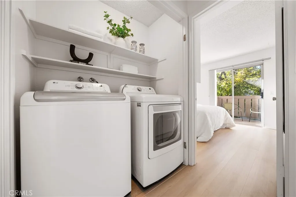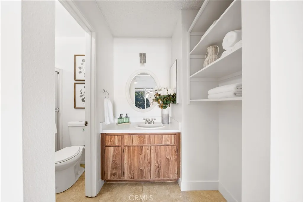 Beautifully updated end-unit upper-level condo in the heart of Woodbridge! This bright and inviting home features new flooring, fresh interior paint, and updated lighting throughout. The practical open layout offers three bedrooms, two bathrooms, two patios, plus a separate storage room. Step into a spacious and comfortable living room filled with natural light thanks to its end-unit location. The dining area includes a built-in unit with upper open shelving and lower cabinets, providing excellent storage and display space. The modern kitchen is equipped with an oven, microwave, dishwasher and refrigerator, and opens directly to a cozy balcony. The private primary suite includes a custom closet and a full bathroom. Two additional bedrooms complete the home, including one featuring a large walk-in closet, custom wall-mounted shelving, and direct balcony access. Located just steps from the community pool, spa, and park. Enjoy all the amenities Woodbridge is famous forbeautiful lakes, resort-style pools, tennis courts, playgrounds, and top-rated Irvine schools. Perfectly situated for convenience, lifestyle, and exceptional value!