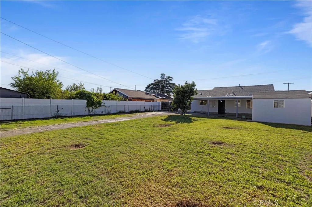 Tucked behind a freshly painted exterior and a bold colored stamped driveway, this fully remodeled home is the kind of opportunity buyers wait years for. Step inside and feel the differenceeco-engineered wood laminate floors flow wall-to-wall, guiding you through an open living and dining space that leads into a true family room (could be 3rd bedroom) w/ new sliding door built for gathering. The kitchen shines with brand-new cabinets, quartz countertops, modern fixtures, and new appliances, while the remodeled bathroom stuns with a designer tile shower, new vanity, fixtures, and window. Big bedrooms feature ceiling fans throughout for comfort year-round. Off the kitchen, a dedicated laundry room includes a pantry and a new water heater for added function. Outside is where the story gets excitingan enormous fully fenced rear yard with a huge covered patio, custom powered storage shed, and direct front, rear and RV access (parking). The lot is ideal for multiple ADUs and/or future home expansion. With a new roof, fresh interior and exterior paint, updated landscaping front and back, and true turn-key condition, this home is perfect for first-time buyers, multi-generational living, or investors ready to maximize returns. Close to schools, shopping, dining, and the 5 Freewaythis one checks every box. Opportunities like this dont wait. Neither should you.