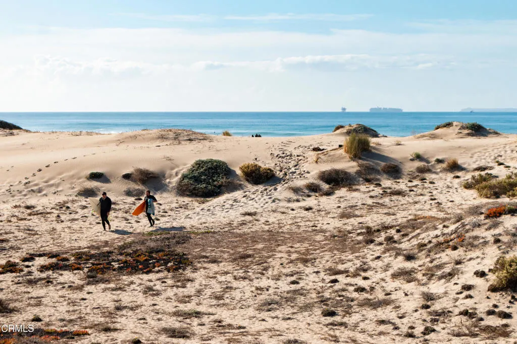 Welcome to Mandalay Shores, a beach community known for great waves, miles of beaches, stunning sunsets and an idyllic lifestyle where outdoor activities abound. Four spots back from the sandy shores of Mandalay Beach, this coastal condo makes a great full-time home or weekend getaway. Filled with convenient features, this is a well-kept property to enjoy right away.The 'penthouse' of the building, 5463 Driftwood stretches over the garages, meaning there are no downstairs neighbors. Once up the private exterior stairs that lead to the home, there is a modern Dutch Door entry, which allows cool ocean breezes to fill the space. A great-room style kitchen, dining and family room have mountain views, natural light, soaring ceilings and a large balcony. Two bedrooms and two baths are on the same level, one with its own northwest-facing balcony. There is an efficient bonus of a laundry area in the hall bath with room for full-size appliances. Upstairs is a spacious flexible space, currently styled as an office and family room. With ocean views, this could also make a primary or guest sleeping room. With its west and northwest exposure, this home is bright throughout the day, and its views include the ocean, Channel Islands, and the famed Topa Topa mountains of Ojai, where the breathtaking 'Pink Moment' is a visual treat as the sun sets. In the cooler months, waking up to see snow capping the Topa Topas is a special surprise, something unexpected from a home so close to the beach! On the ground, there is a single-car garage and a dedicated parking spot on the end, with plenty of r