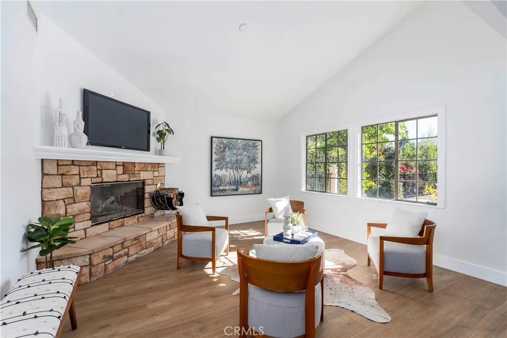 Welcome to this stunning view home in the prestigious guard gated community of Vista Point in Calabasas. Nestled on a sprawling lot at the end of a cul de sac with only seven residences, this remodeled 4 bedroom, 3.5 bathroom home offers 3,288 square feet of luxury living space. The entire upstairs is a luxurious private primary suite with a fireplace and golf course views from the balcony. The spa like bathroom features marble counters and flooring, a bidet, whirlpool bathtub, and a glass door shower. There are two large walk in closets with three way dressing mirror doors, and the suite enjoys complete privacy. Downstairs are three large bedrooms with high ceilings, including two that share a Jack and Jill bathroom. The chefs kitchen features new stainless steel appliances, double oven, 5 burner gas cooktop, trash compactor, butcher block island, and abundant cabinetry. A huge living and family room offers a fireplace and sliding doors that open to the beautiful backyard with deck, pool, spa, golf course views, and endless entertainment potential. Additional features include a dual zone HVAC system, large deck for entertaining, new interior paint, new flooring, a three car garage with direct access, a loft for extra storage, and a dedicated laundry room. The Vista Point community offers two tennis courts and 24 hour security.