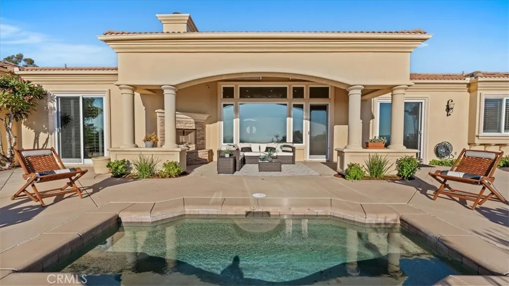 Set high above the city in the coveted Claremont foothills, this contemporary European-inspired residence captures the relaxed elegance & refined craftsmanship that define Claraboya, a premier luxury enclave. A true single-story home without any steps sets the stage for this executive residence. The home sits on a peaceful cul-de-sac & commands sweeping views of city lights, distant ridgelines, & unforgettable sunsets that pour through oversized picture windows, creating a calm & peaceful atmosphere throughout. A graceful marble entry introduces soaring ceilings, solid core doors, & rich hardwood floors that anchor the open layout. The great room blends casual comfort with upscale style, featuring a stone fireplace, custom-built-ins, & seamless indoor-outdoor transitions, ideal for everyday living & sophisticated entertaining. Think of your special holiday events! It is the perfect place to host friends & family. The chefs kitchen is designed for both performance & beauty, offering dual islands, fine cabinetry, granite surfaces, a walk-in pantry, & premium appliances. The primary suite is a private sanctuary with a fireplace, generous walk-in closets, & direct access to the view terrace. The ensuite bath includes a soaking tub, separate shower, & thoughtfully designed dual vanities. The additional bedrooms are spacious & well-appointed, each positioned to provide privacy for family or guests. The backyard feels like a boutique European resort. A covered loggia frames the horizon, while the spa, outdoor fireplace, & built-in BBQ invite gatherings under starlit skies. With ge