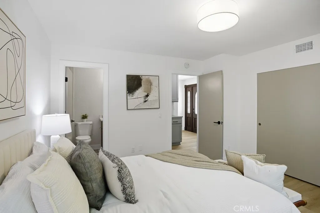 A beautifully renovated single-level home located in the highly desirable 55+ gated community of Camarillo Springs. This thoughtfully redesigned residence features brand-new flooring throughout, custom-tiled bathrooms, a new HVAC system and condenser, and a fully updated kitchen with quartz countertops, modern cabinetry, and new stainless-steel appliances including a range, microwave, hood, and dishwasher. The open-concept layout showcases vaulted ceilings, recessed lighting, a classic brick fireplace, modern LVP flooring, and newer dual-pane sliders and windows. The spacious primary suite offers ample room and natural light, direct patio access, vaulted ceilings, and a generous walk-in closet. The ensuite bathroom includes dual sinks, updated fixtures, and a tiled walk-in shower. The secondary bedroom features ample storage and direct access to a remodeled Jack-and-Jillstyle bathroom. Outdoor living includes a low-maintenance backyard with mountain views, new walking pavers, and a small bocce ball area ideal for relaxation or entertainment. Additional highlights include an indoor laundry room with storage and a direct-access garage with custom cabinetry, a workbench, epoxy flooring, and a contemporary garage door. The property also features a full-size driveway accommodating two cars side-by-sidea rare advantage in this community where many lots offer limited driveway space. Camarillo Springs provides resort-style amenities including a clubhouse, pool, spa, fitness areas, walking trails, seasonal creek, and proximity to the Camarillo Springs Golf Course. Conveniently locat
