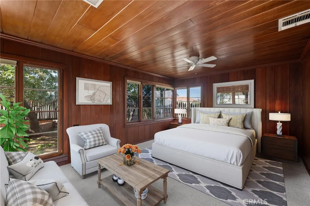 Discover a home overflowing with character located in Taft. This 1631 sqft 3 bedroom, 1.75-bath home includes a standout bonus featuring a vacant lot next door, included in the saleproviding valuable additional space ideal for extended outdoor living, a pool, or future expansion. Inside discover warm wood-accented ceilings that enhance the cozy atmosphere and pair beautifully with the views from the living room. The spacious layout includes a bright living area and a cozy dining space connected by a double-sided brick fireplace, adding charm and comfort to both rooms. Enjoy the sunlit primary room overlooking the tranquil courtyard with brick pathways, and peaceful garden views. French doors and large windows throughout bring in abundant natural light and create a seamless indoor-outdoor feel. A home filled with charm and opportunity, waiting for the right buyer to bring its next story to life.