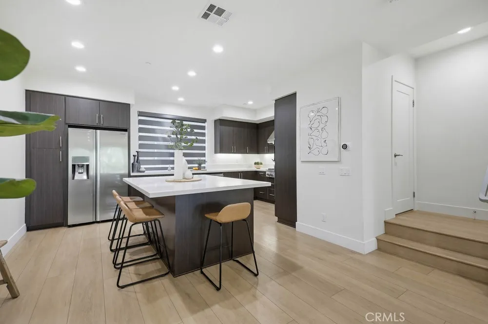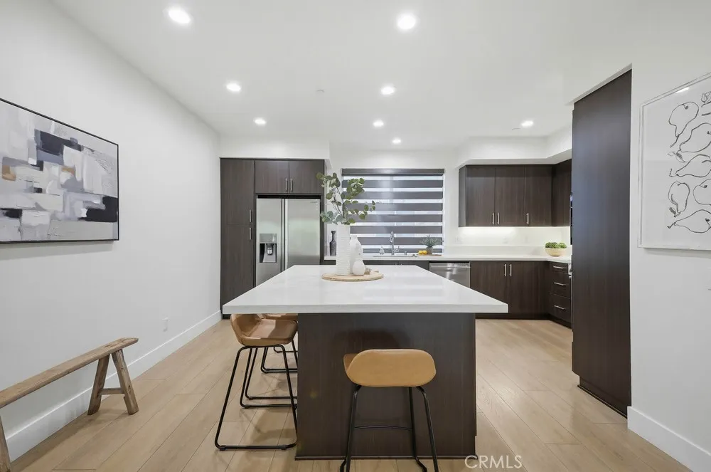 Introducing a stunning townhouse-style home perfectly positioned on a premier front-row park location, offering beautiful, unobstructed views. Spanning approximately 2,245 square feet, this residence epitomizes the ideal indooroutdoor lifestyle. This striking 3-bedroom, 3-bath home showcases open, airy living spaces enhanced by an array of custom finishes. Step inside to discover a sophisticated main living area featuring elegant upgraded flooring, automated designer window treatments, custom wall design, modern lighting, contemporary fireplace, custom glass staircase and much more. High-volume ceilings and recessed energy efficient LED lighting create a bright and inviting atmosphere, while the luxurious primary suitecomplete with a large walk-in closet and sweeping viewsoffers a serene private retreat. Exceptional natural light fills the home, further enhancing its peaceful, thoughtfully designed layout. Enjoy two outdoor balconies with picturesque views of the park, city and sunsets. The highly desirable open floorplan includes a chef-inspired kitchen equipped with a large center island, quartz countertops, modern cabinetry, and professional-grade stainless steel appliancesperfect for culinary enthusiasts and entertainers alike. This property also features a RARE, oversized 3-car finished garage with EV charger, providing ample storage and direct interior access. Living like a single-family home with no units above or below, the residence ensures exceptional privacy and comfort. The Manhattan enclave boasts one of the lowest HOA fees in Central Park West, delivering outs