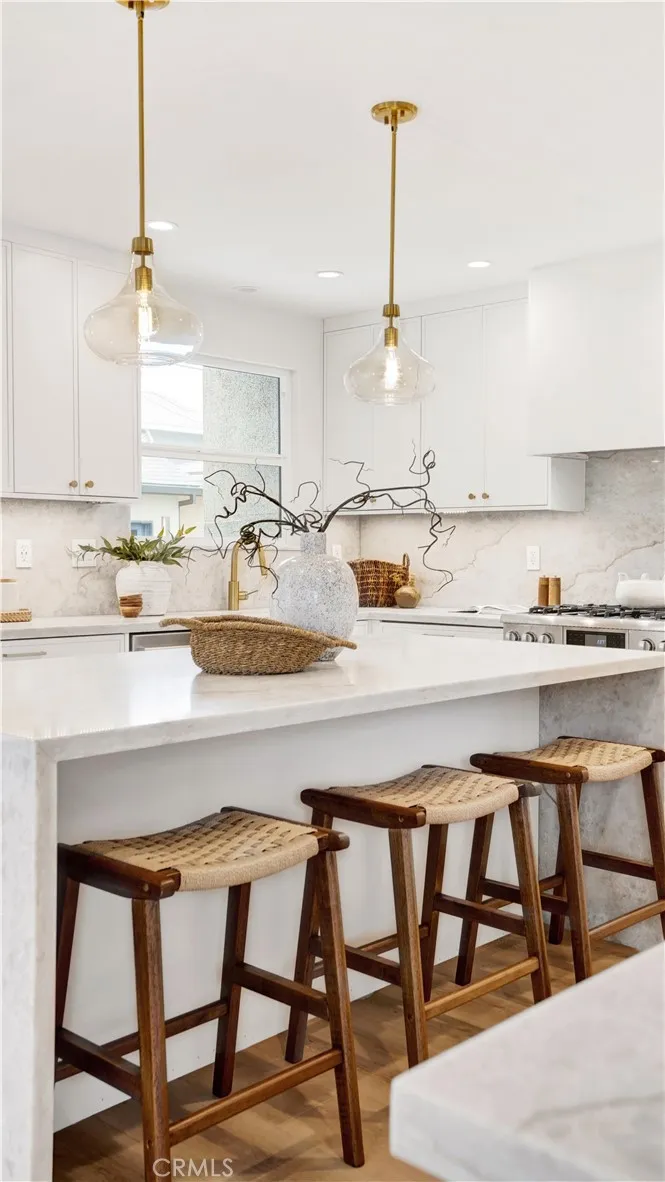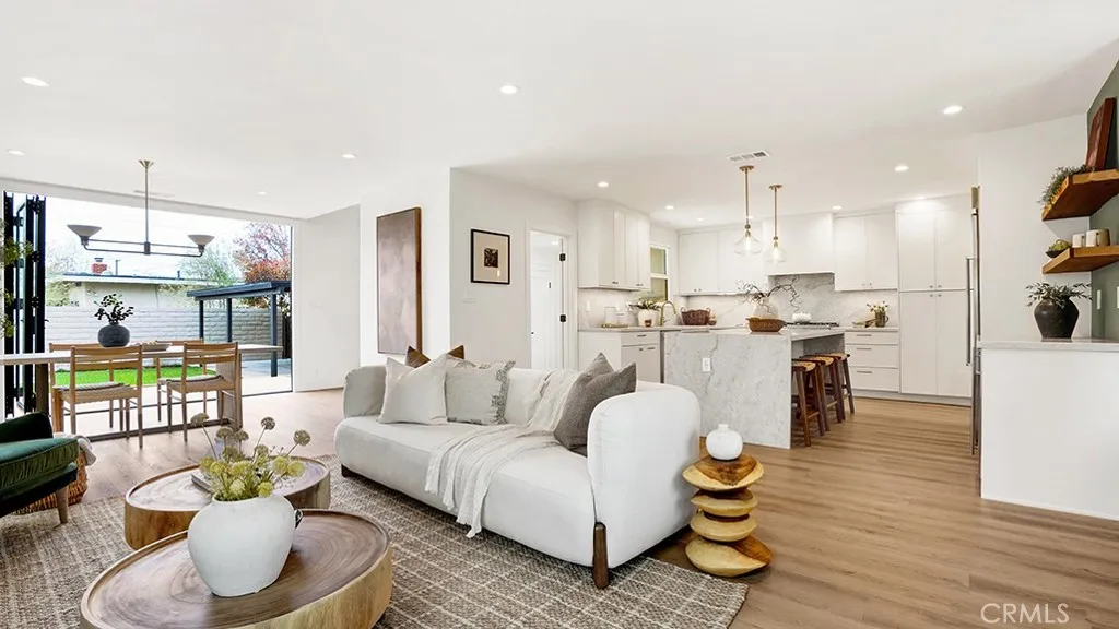 Happy Holidays and Welcome Home! This Gorgeous 5 Bed 3 Bath Home Can Now Be Yours! Open Floor plan from the Kitchen to Living room and Dining room. Enormous Custom Entertainer's Kitchen with 7 foot Island, 48 inch KitchenAid Refrigerator, 6 Burner Thor Gas Range With Built-In Air Fryer, Wine fridge and Dry Bar. Exquisite Taj Mahal Quartz Countertops and Backsplash. Featuring 2 Bed and 1 Bath Upstairs as Well as 3 Bed 2 Bath Downstairs. A Primary Bedroom on Each Floor! All Bathrooms offer Beautiful Stone Work, Heated Floors, Frameless Shower Doors and Shampoo Niche with Lighting. You will Find Beautiful Designer Light Fixtures and Hardware Throughout, including a Modern Staircase and New Luxury Vinyl Flooring. New Interior Doors, New Dutch Entry Door and 8 foot Bi-fold Patio Doors that Span 10 feet wide for Indoor Outdoor Living. New Recessed Lighting with Dimmers, New Electrical, New Dual Pane Windows and Custom Blinds, New Tankless Water Heater, New Plumbing and New Central AC and Heating. Newer Roof, Newer 200 AMP main panel and 100 AMP sib-panel in the garage. New Landscaping, Hardscape, Sprinklers with Timers for both Lawn and Planters. New Rain Gutters, Paint and More... See It Today Because It Will be Gone Tomorrow!