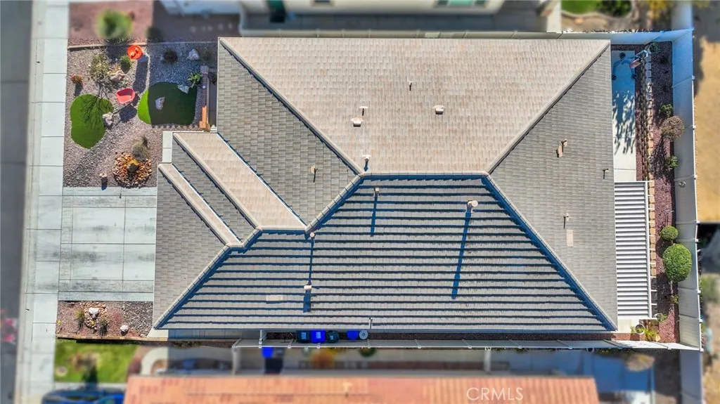 Welcome to this meticulously maintained two-bedroom, two-bath home with a bonus room in the highly desirable Sun City Del Webb 55+ gated community. Offering 1,674 square feet of thoughtfully designed living space, this home blends comfort, style, and easy living. The open-concept living room is ideal for both relaxing and entertaining, featuring a sliding glass door that open to a covered patio and a beautifully manicured backyard with vinyl fencingperfect for summer BBQs and outdoor gatherings. Shutters throughout the home add timeless appeal, while the fully finished garage with epoxy floors provides both durability and style. Enjoy a welcoming front courtyard enhanced by a custom security screen door and take in the serene curb appeal created by an elegant rock river stream flowing through the front yard. The primary suite offers a relaxing retreat, complete with a bathtub in the en-suite bathroom. Major appliancesincluding the water heater, refrigerator, dishwasher, washer, and dryerare all approximately two years old and are included in the sale, offering added value and peace of mind. With a low HOA of just $262 per month, residents enjoy resort-style amenities including indoor and outdoor pools and spas, a fully equipped fitness center, pickleball courts, golf, and more. Priced to sell, this beautiful home offers the perfect blend of comfort, security, and active adult living. Dont miss out!