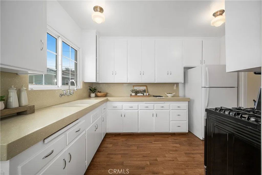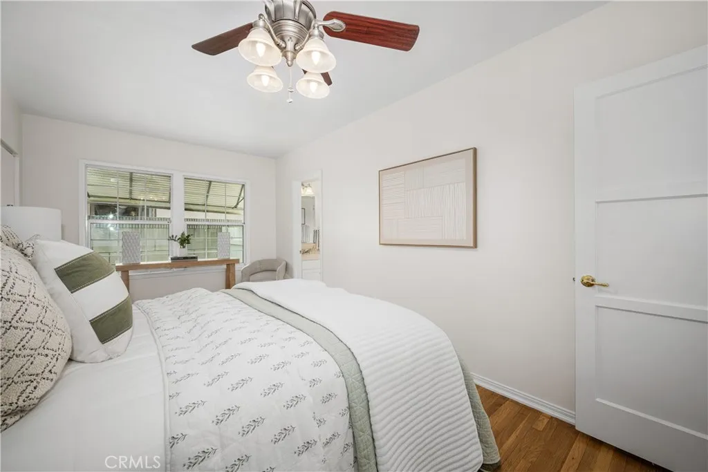 This charming South of Conant home with great curb appeal and large front porch invites you into an open living room & dining area with lots of natural light. Kitchen with lots of counter & cupboard space, breakfast eating area and a classic built-in ironing board. Master bedroom with 2 closets & 3/4 bath with tiled vanity top. Large back bedroom with nice size closet & patio access. Remodeled full bath with tiled shower, Mosaic tiled floor & farmhouse sink. Enclosed patio with a/c unit and back yard access. Private fenced back yard with gas fireplace, avocado tree & side garage access. Fresh interior paint. Refinished oak hardwood flooring. Double pane windows. Long driveway leading to a 2 car detached garage with laundry hookups.
