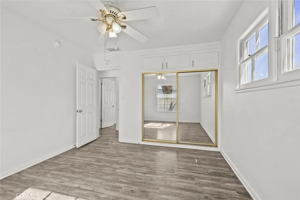 Welcome to this well maintained 3 bedroom, 1 bathroom home offering comfortable living space with a functional and inviting layout. This residence features updated finishes and abundant natural light throughout. The interior showcases wood style flooring, recessed lighting, and refreshed living areas designed for everyday comfort. The kitchen has been updated with white cabinetry, stone countertops, stainless steel appliances, and modern fixtures, creating a clean and practical cooking space. Adjacent dining and living areas provide flexibility for gatherings and daily living. The bathroom has been updated with contemporary finishes, including dual sink vanities, modern lighting, and a shower and tub enclosure with tiled walls. Each bedroom offers comfortable space, closet storage, and natural light. Exterior features include a spacious backyard with patio coverage, open yard space, and room for outdoor use or entertaining. A detached garage adds excellent value and presents strong ADU conversion potential, making this property an even more attractive investment opportunity. The home also offers driveway parking and additional exterior utility areas. The property is equipped with solar panels. Conveniently located near shopping, dining, schools, and freeway access, this home delivers a well balanced blend of interior updates, outdoor space, and future potential.