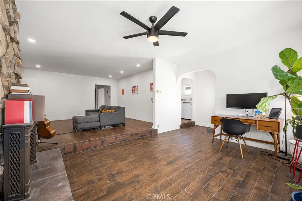 Welcome to this 3-bedroom, 2-bath home ideally located in the highly sought after Carson Park neighborhood of Lakewood, offering great potential and opportunity. With a spacious and functional layout, the home blends classic charm with thoughtful updates and room to make it your own. Step inside to a large, light filled living room featuring recessed lighting, a beautiful stone fireplace, and laminate flooring with original oak hardwood floors underneath. A separate family room with expansive windows and a sliding glass door opens to the backyard, creating a seamless indoor-outdoor flow perfect for everyday living and entertaining. The kitchen opens to a dedicated dining area and features an eat-up bar, double oven, gas range with vent hood, oak cabinetry, recessed lighting, and ample counter space. A separate laundry room with additional cabinetry and pantry storage adds convenience and functionality. The spacious primary suite includes floor to ceiling mirrored closet doors and a fully remodeled en-suite bathroom showcasing a large walk-in shower with porcelain tile, stone composite shower pan, cementitious tile flooring, custom vanity, and stylish gold accent fixtures. Additional highlights include dual-pane windows, a composition 50-year roof, central heating, ceiling fans in the bedrooms, and a long driveway offering ample parking, including space for RV or boat parking and a detached 2-car garage. Step outside to a private backyard with a pooljust the right space to relax, unwind, and enjoy SoCal living. Ideally located near award-winning Cleveland Elementary, McBride