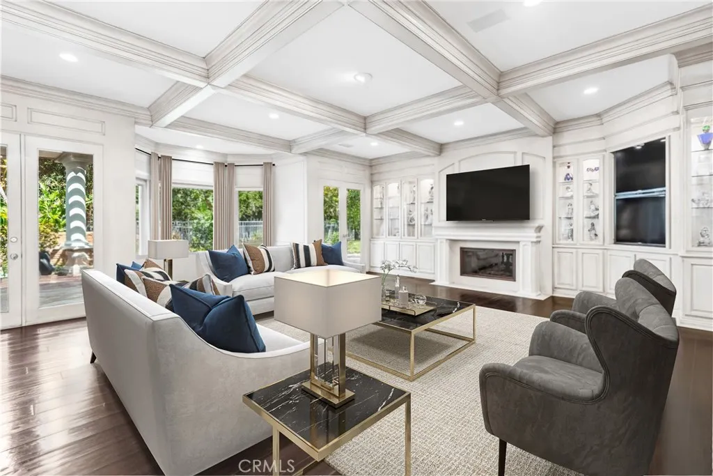 Located in the prestigious guard-gated community of Mountain View Estates this customized and expanded Plan 7 offers 6868 sq. ft. of refined living space with 6 en-suite bedrooms, including 2 primary suites, plus a 4-car garage. En-suite bedrooms 5 and 6 are currently used as a home theater and a large game room, providing excellent flexibility for modern living. Set on a single-loaded cul-de-sac, the home features beautiful curb appeal and meticulous maintenance. A dramatic 2 story foyer showcases a sweeping wrought-iron staircase, marble floors, & a Murano glass chandelier. The spacious family room includes custom built-ins, hardwood floors, a wet bar, and a fireplace, opening to the expansive kitchen with grand dining area, walk-in pantry, large center island, & butler's pantry. The elegant formal dining room offers French doors to a charming side yard, a crystal chandelier, and built-in buffet cabinetry. The formal living room features coffered ceilings, hardwood floors, a fireplace, & another crystal chandelier. The main primary suite boasts a fireplace, 2 oversized walk-in closets, a spa style bathroom with dual vanities, spa tub & separate shower. The second primary suite includes 2 closets and a bathroom. Two additional en-suite bedrooms complete the upper level. The backyard is a private tropical oasis with lush landscaping, a beach entry saltwater pool, stacked stone & rock waterfalls, & a separate spa. A built-in BBQ, covered patio, & artificial lawn create in ideal setting for entertaining or relaxing. Additional features include a 4 zone heating & air, low main