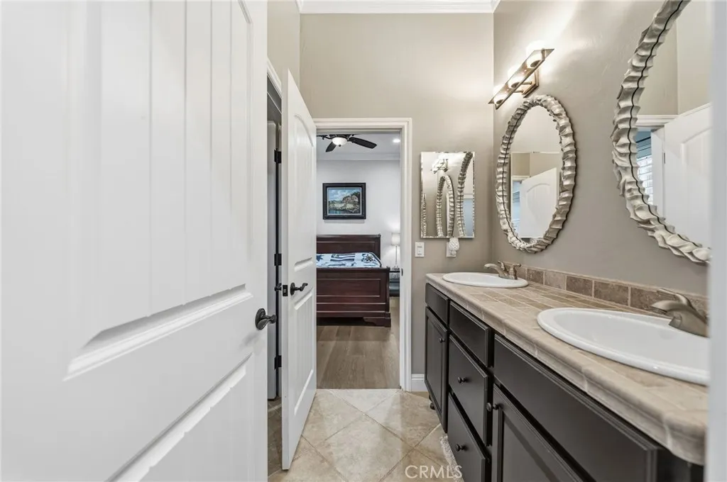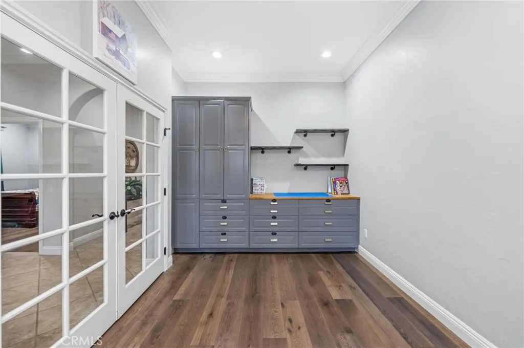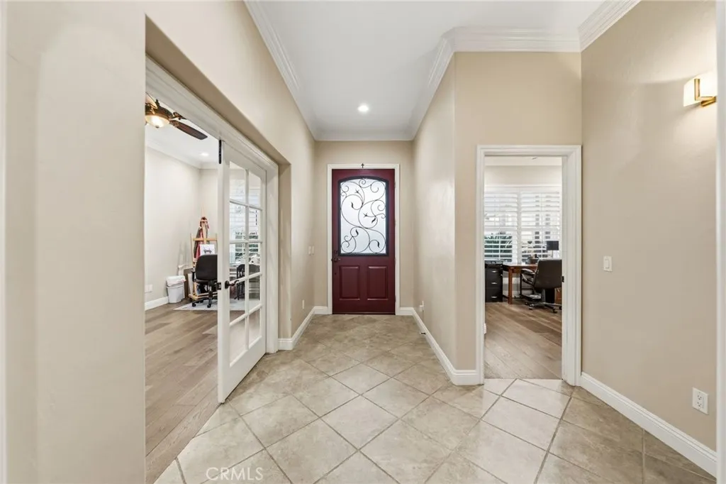 A beautiful and rare opportunity to purchase a meticulously cared-for single-story pool home, proudly maintained by its current owners. Offering approximately 3,000 square feet, this thoughtfully designed home features 4 bedrooms and 3 full bathrooms with a highly functional floorplan. As you enter the home, three bedrooms are positioned toward the front of the property, one of which is currently set up as a private office, perfect for working from home. The home offers multiple living and entertaining spaces including a welcoming living room, formal dining room, and a spacious family room that flows seamlessly into the gourmet kitchen. The kitchen is a chefs dream, complete with top-of-the-line appliances, rich cabinetry, custom lighting, and a large island with a built-in table and bar-height seatingperfect for gathering and entertaining. For wine enthusiasts, the home features a custom wine cellar with its own dedicated mini-split AC system to maintain ideal temperatures year-round, offering storage for approximately 575 bottles with display shelving. Privately situated on the opposite side of the home, the expansive primary suite offers direct backyard access and a beautifully appointed bathroom with granite counters, a large walk-in shower with dual shower heads, and a spacious walk-in closet with custom built-ins and center island. Additional upgrades include crown moulding, plantation shutters, upgraded lighting and fixtures, soft-close cabinetry, LED lighting, and engineered wood and tile flooring throughout with no carpet. The inviting family room showcases a stack