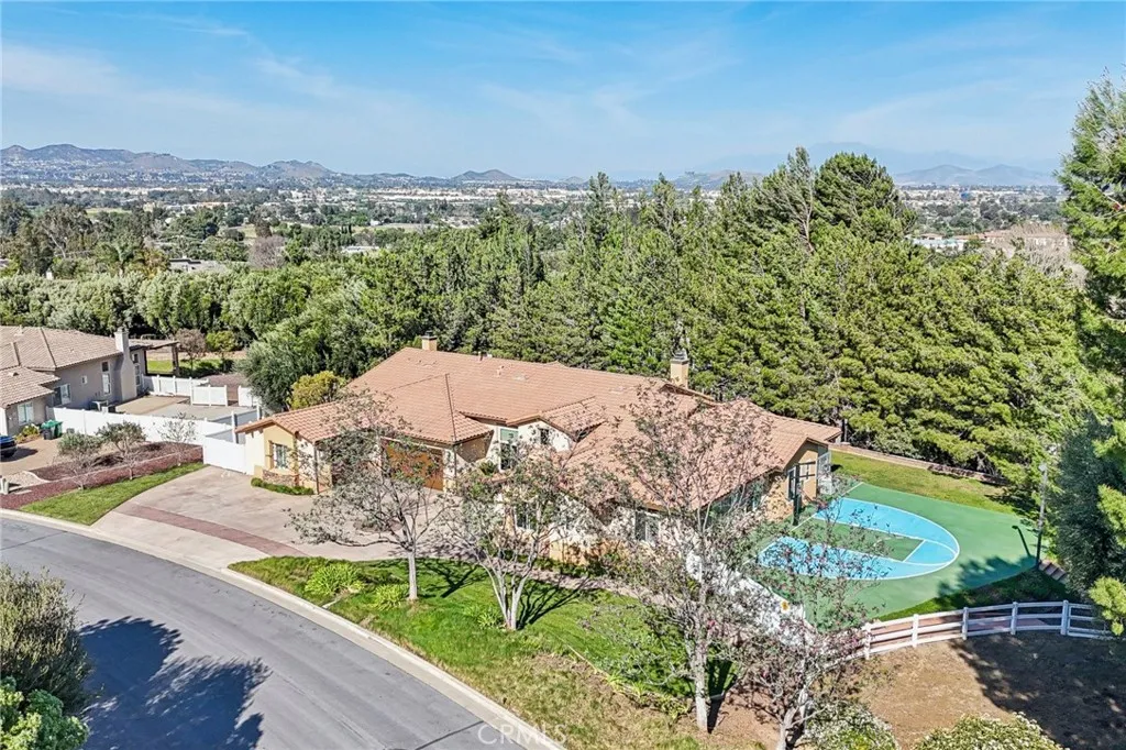 Stunning 6-bedroom, 3.5-bath residence located in the exclusive gated Olive Hill Ranch community, offering an exceptional combination of space, privacy, and resort-style outdoor living. The thoughtfully designed open floor plan is filled with natural light, creating a bright and welcoming atmosphere throughout the main living areas. Generously sized bedrooms provide comfort and flexibility for a variety of living needs. The open kitchen flows seamlessly into the main living space, creating an ideal setting for both everyday living and entertaining. The living room is centered around a cozy fireplace and overlooks the expansive backyard, while modern French doors provide effortless indoor-outdoor flow. The spacious primary suite offers a private retreat, featuring two walk-in closet and a beautifully remodeled primary bathroom complete with a soaking tub, separate walk-in shower, and views overlooking the backyard and surrounding property. Step outside to a true backyard oasis, highlighted by a waterfall feature, PebbleTec saltwater pool and spa, and expansive outdoor space designed for both relaxation and recreation. The property also includes double RV and boat parking along with excellent equestrian amenities, including a horse facility with two stalls and one corral and a tack barn. With its rare combination of luxury features, equestrian space, and gated community setting, this property offers a truly exceptional opportunity.